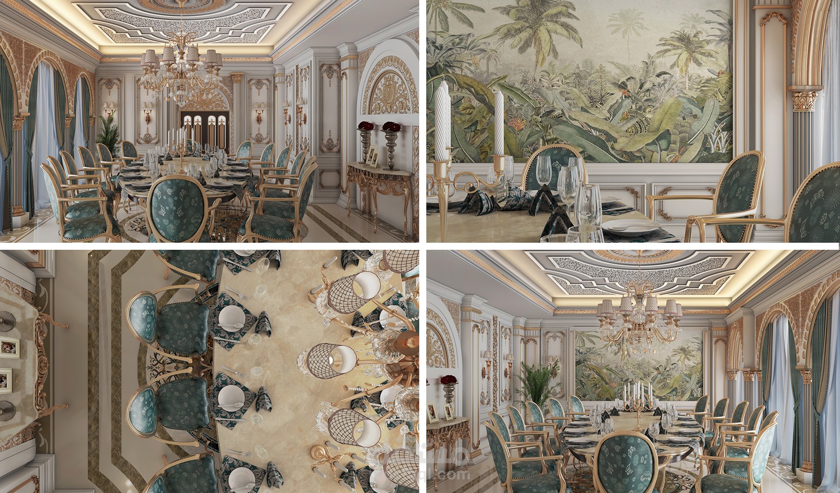 غرفة طعام خاصة للضيوف كلاسيكية تقع في قصر في السعودية