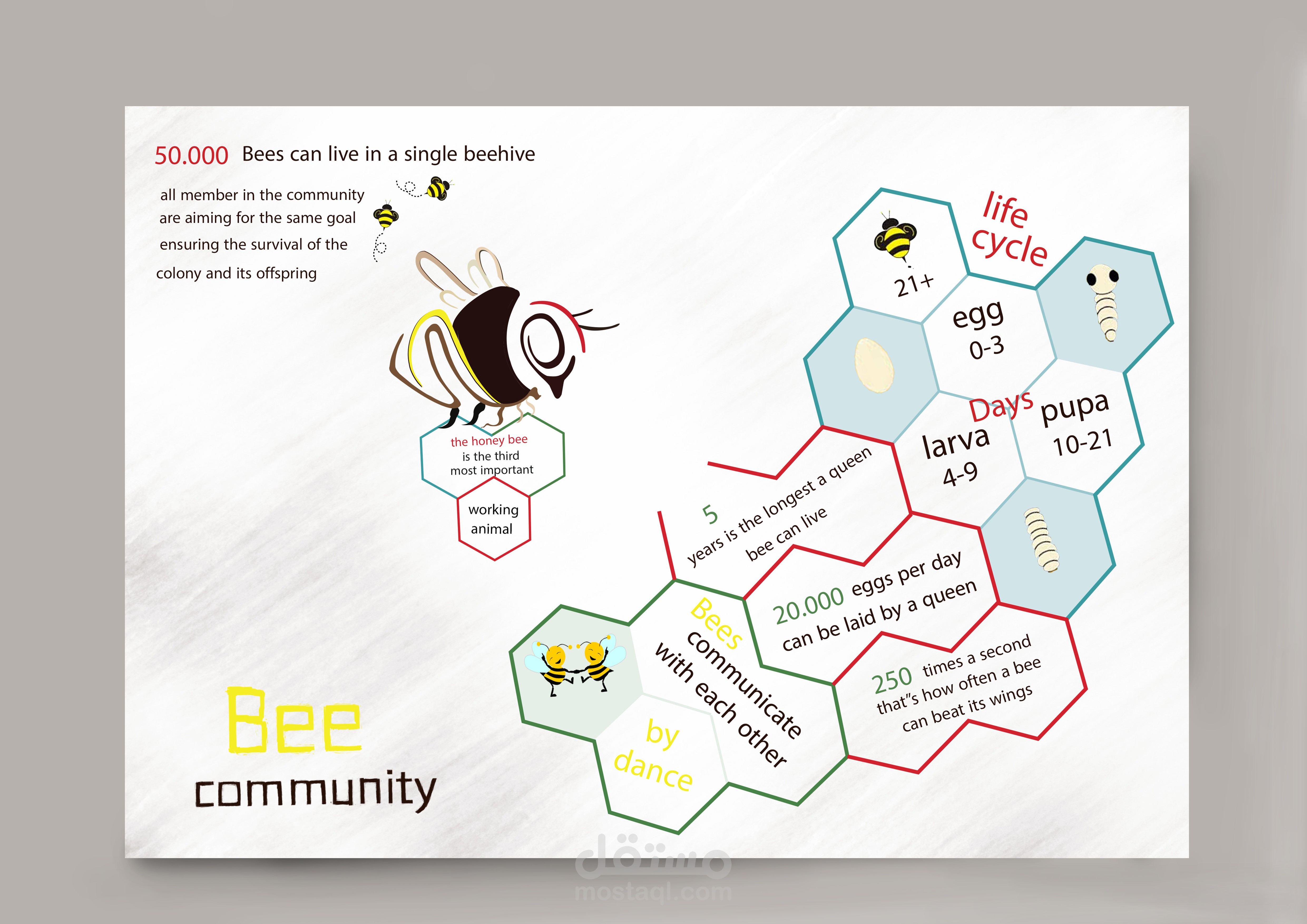 تصميم إنفوجرافيك عن حياة النحلة