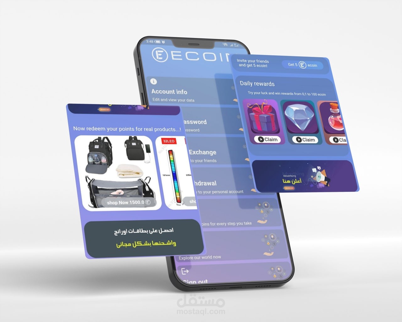 برنامج ربحي مكافأت للمشي...يحتوى علي متجر وشات