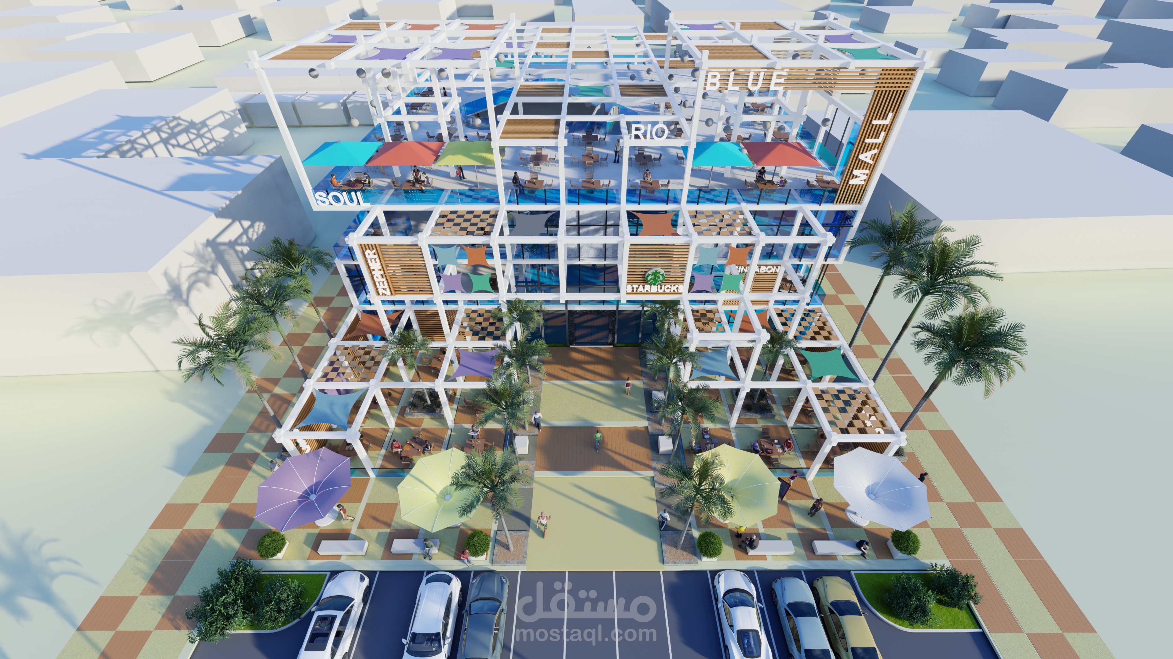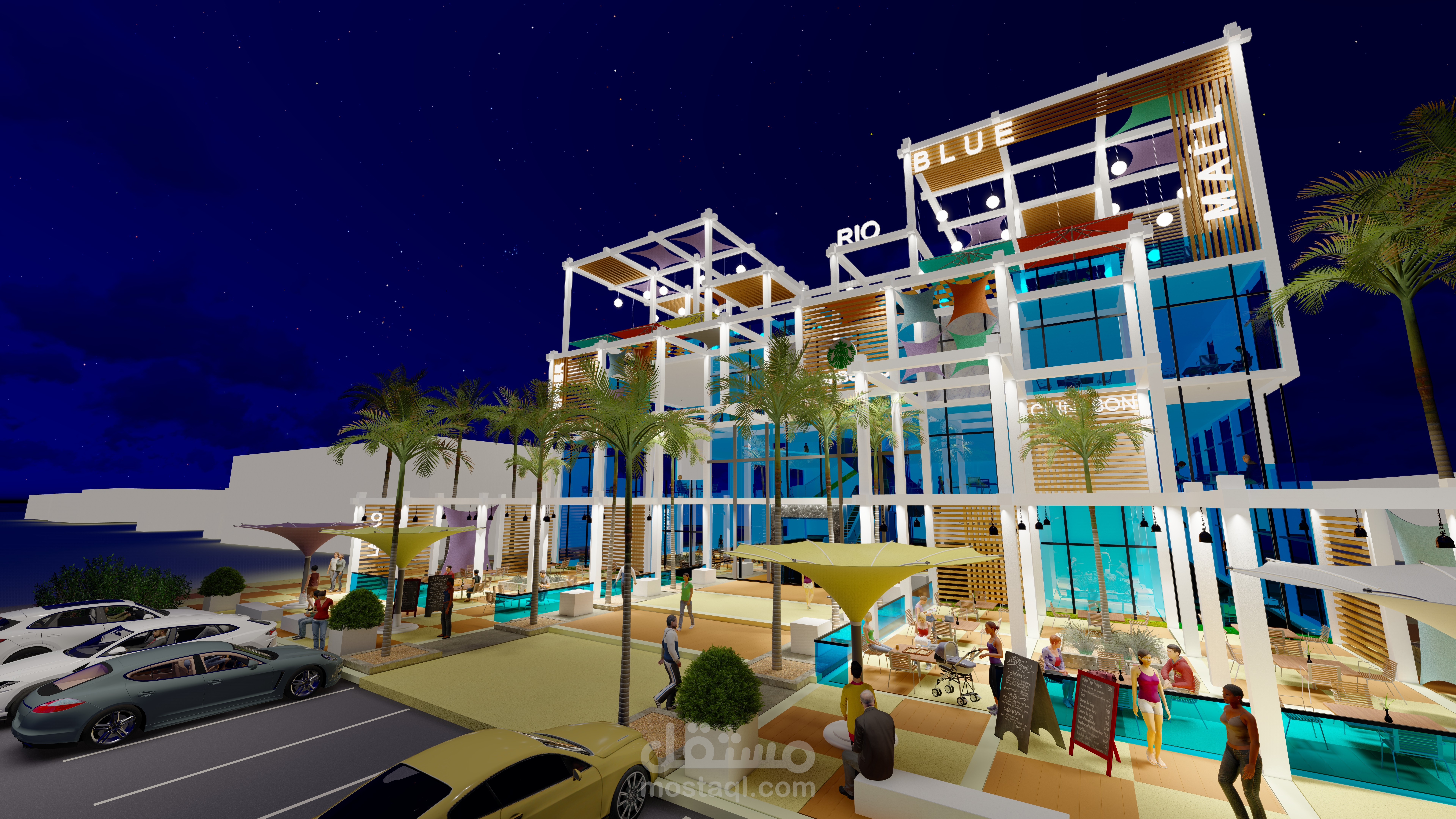 Mini Mall in North coast/ Egypt contains shops ,cafes and restaurants inside and outside