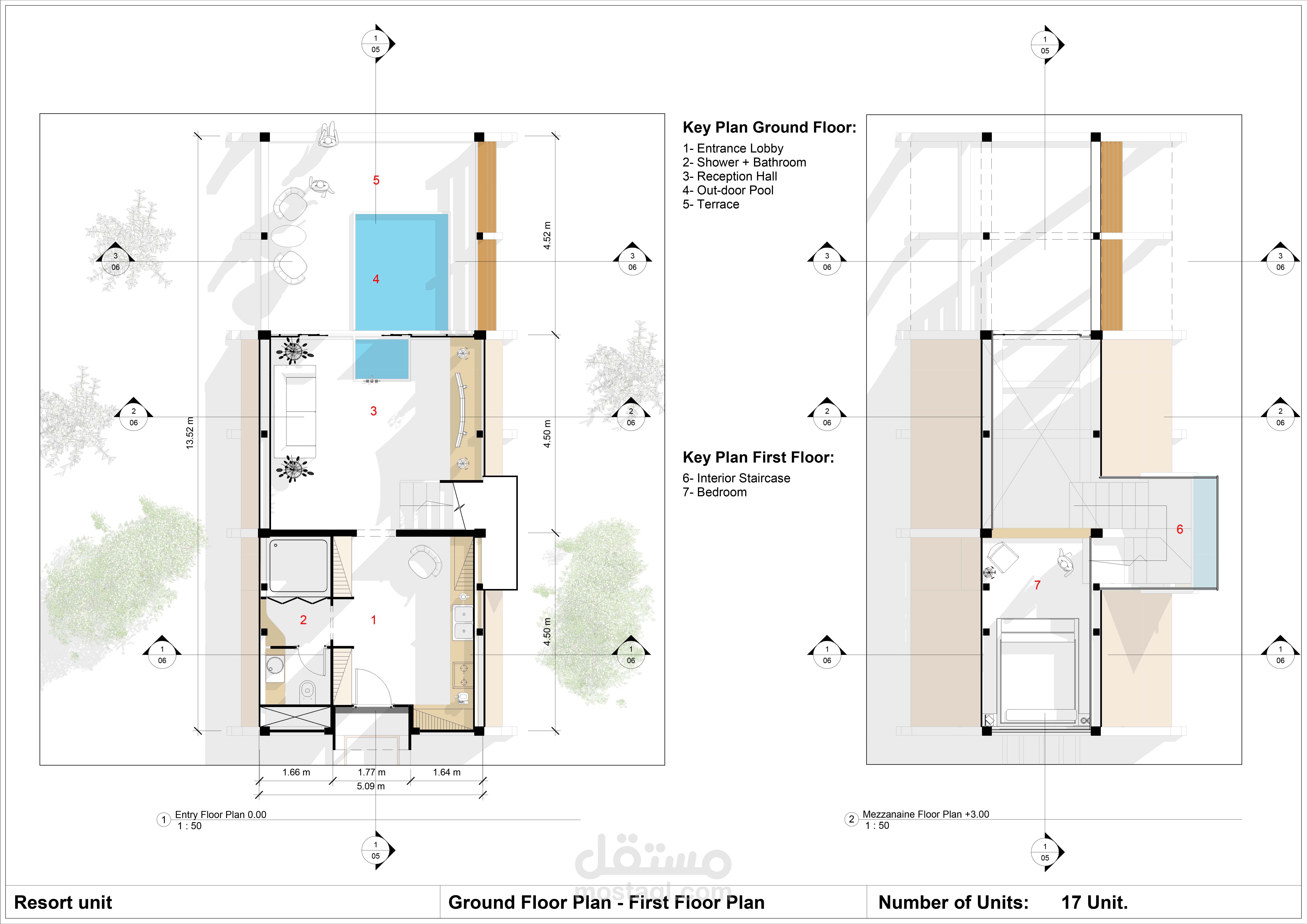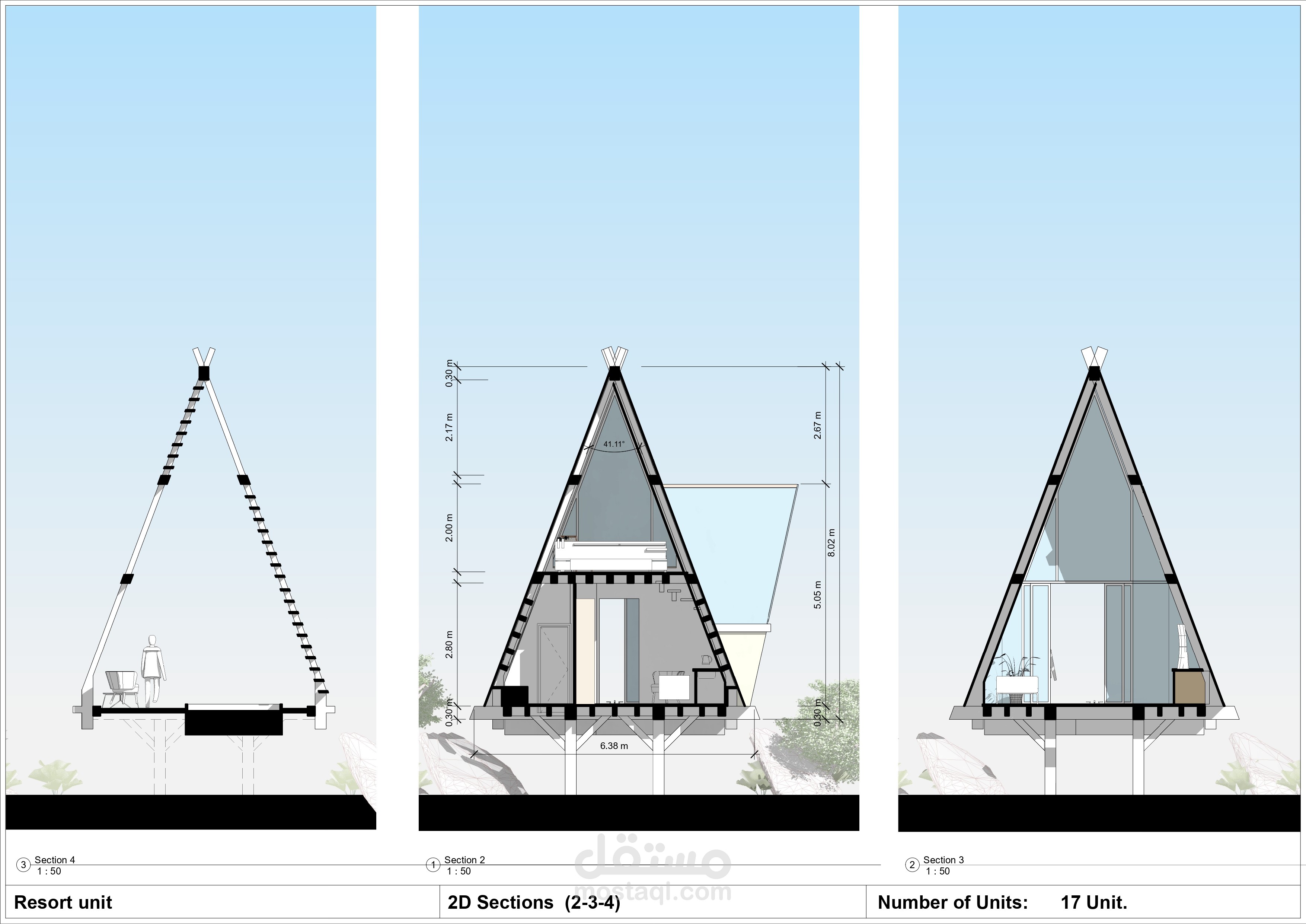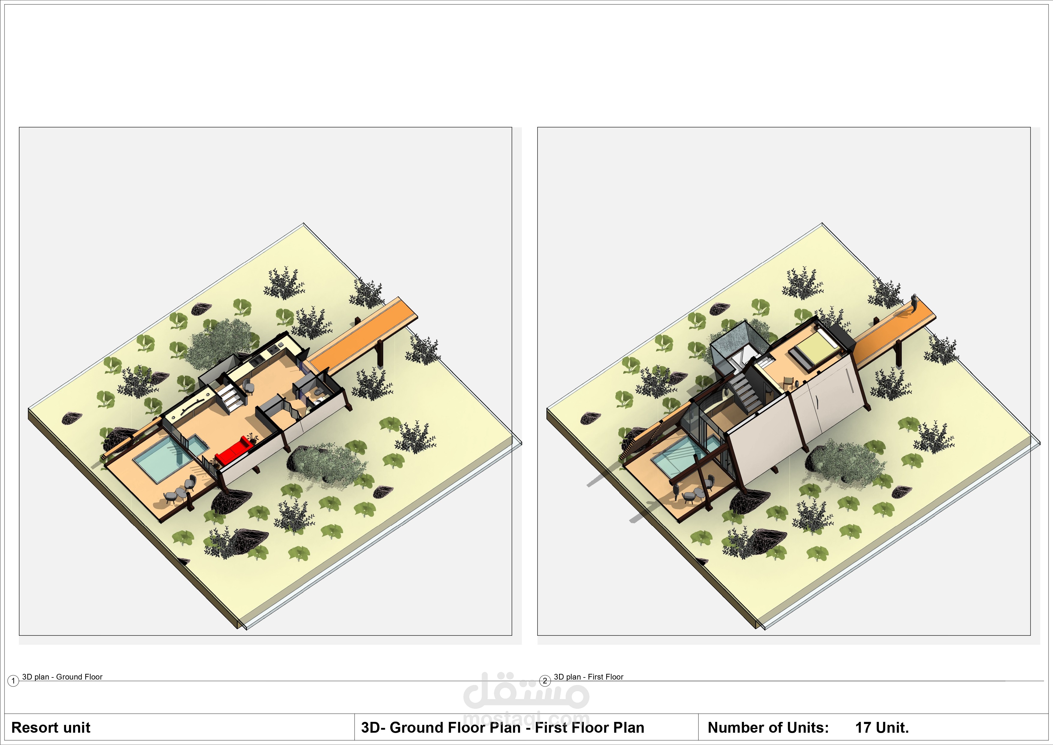 The design of beach resort unit 3d and 2d drawings