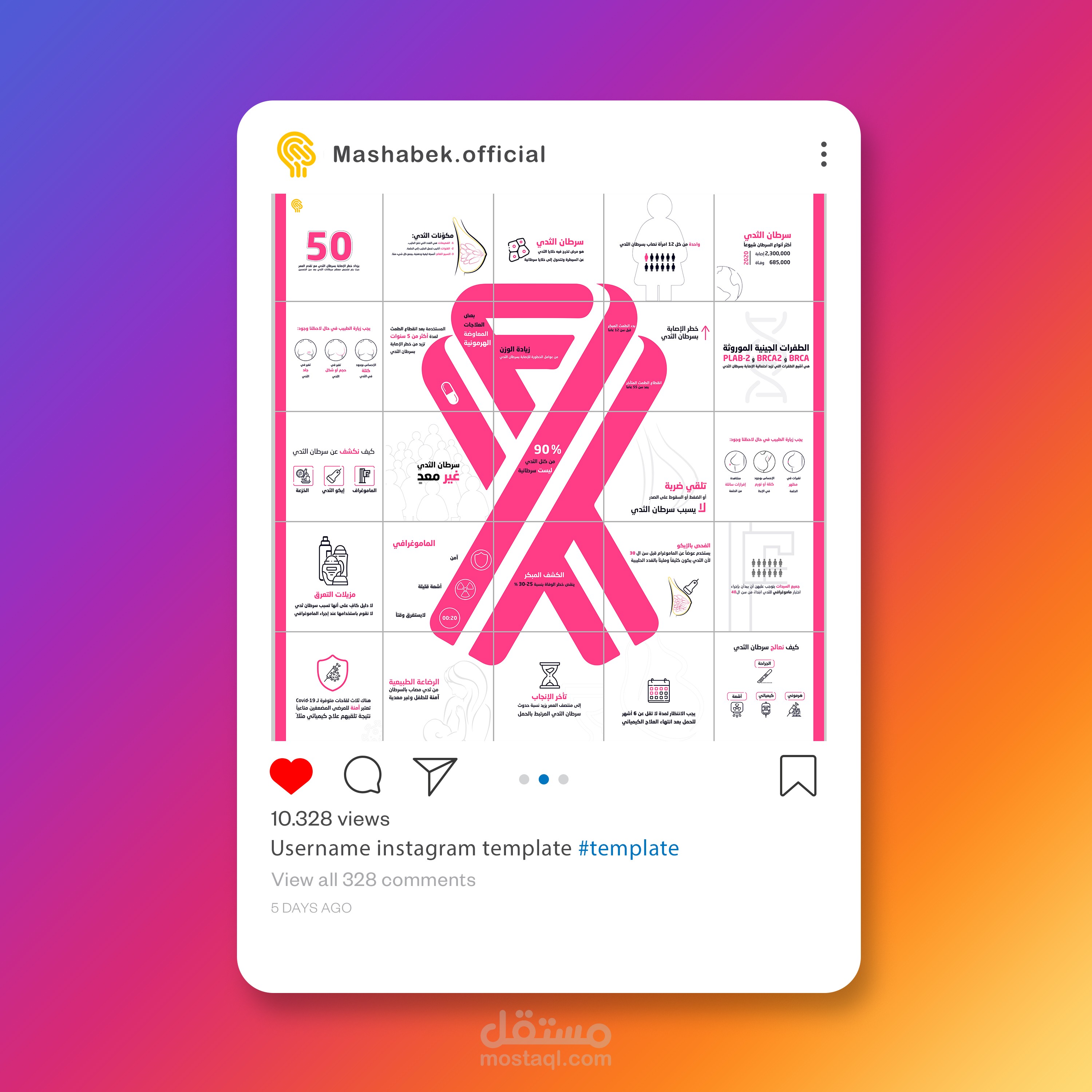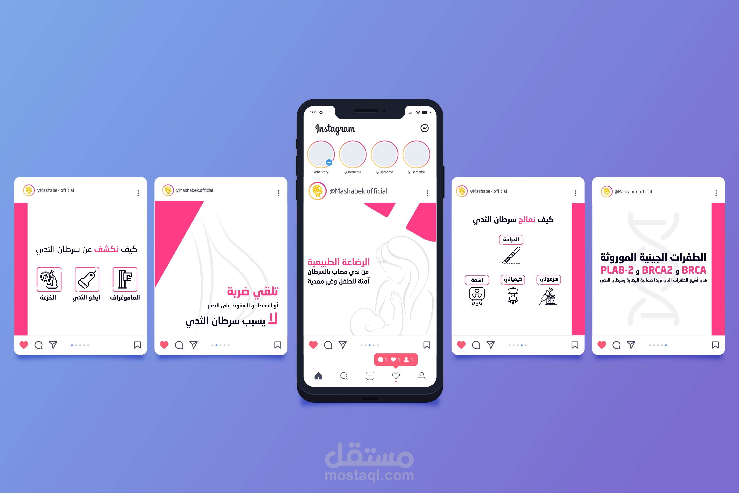 تم تصميم 25 بوست بشكل مجزأ (بما يشبه الـ "puzzle") من صورة كاملة للشريط الوردي الذي يعبر عن سرطان الثدي