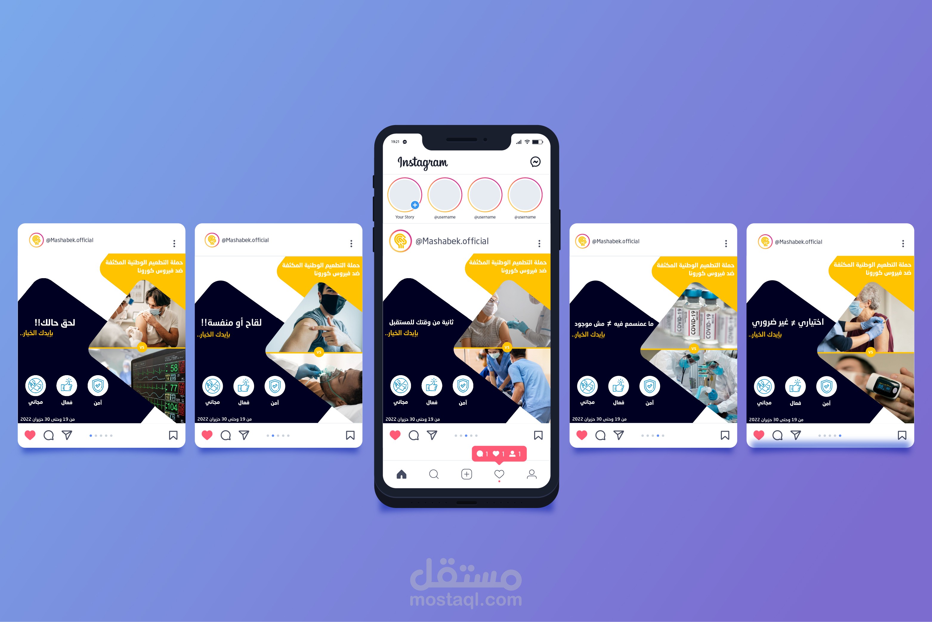 تم تصميم عدة تصاميم لحثّ الناس على الحصول على اللقاح بأسرع وقت ممكن ، العمل كان بالتشارك مع منظمة الصحة العالمية (WHO) بالتنسيق مع مبادرة "مشابك".