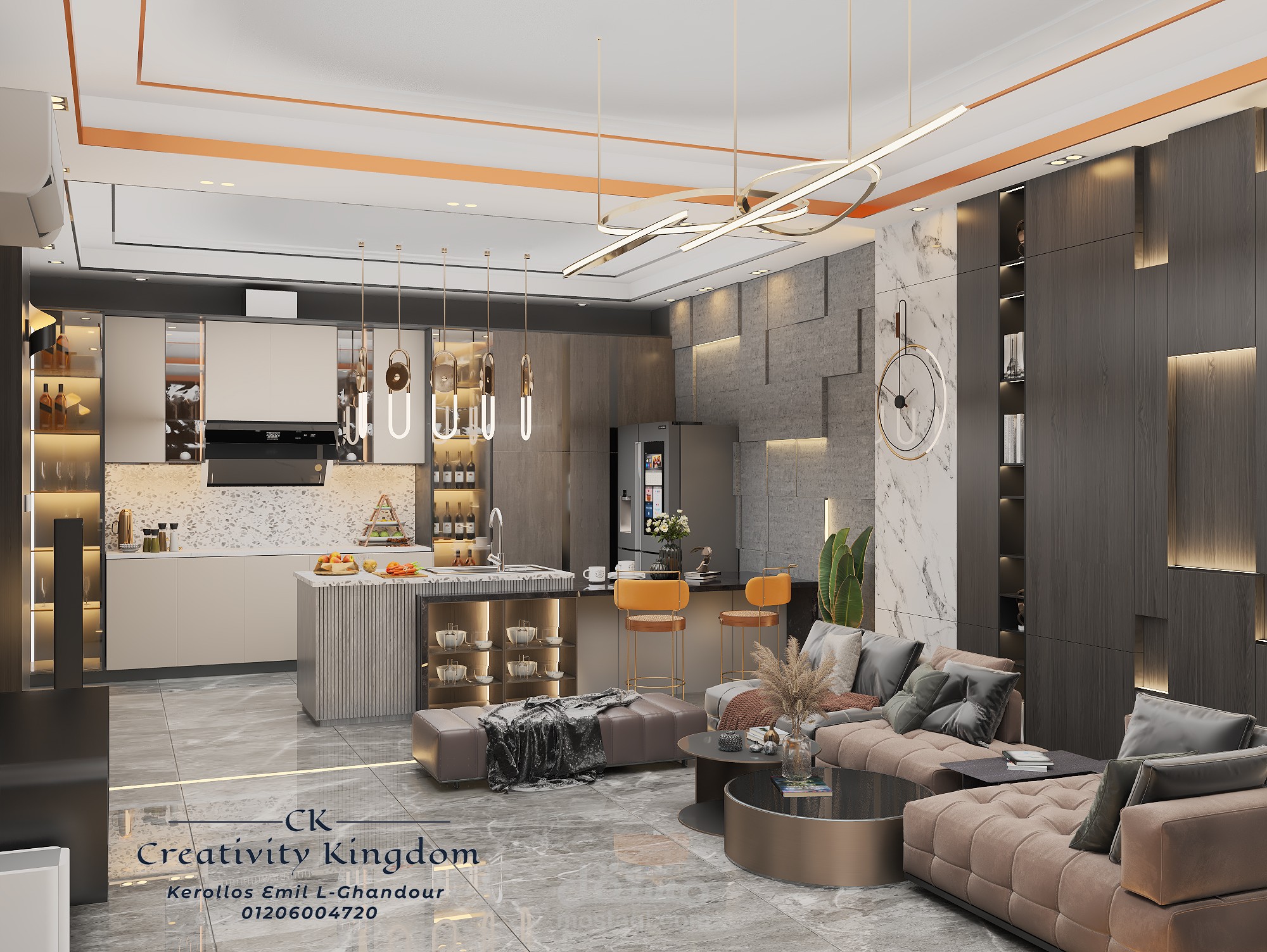 Modern Recepion that have Amirican Kitchen &Dinning Room made to make you comfort
