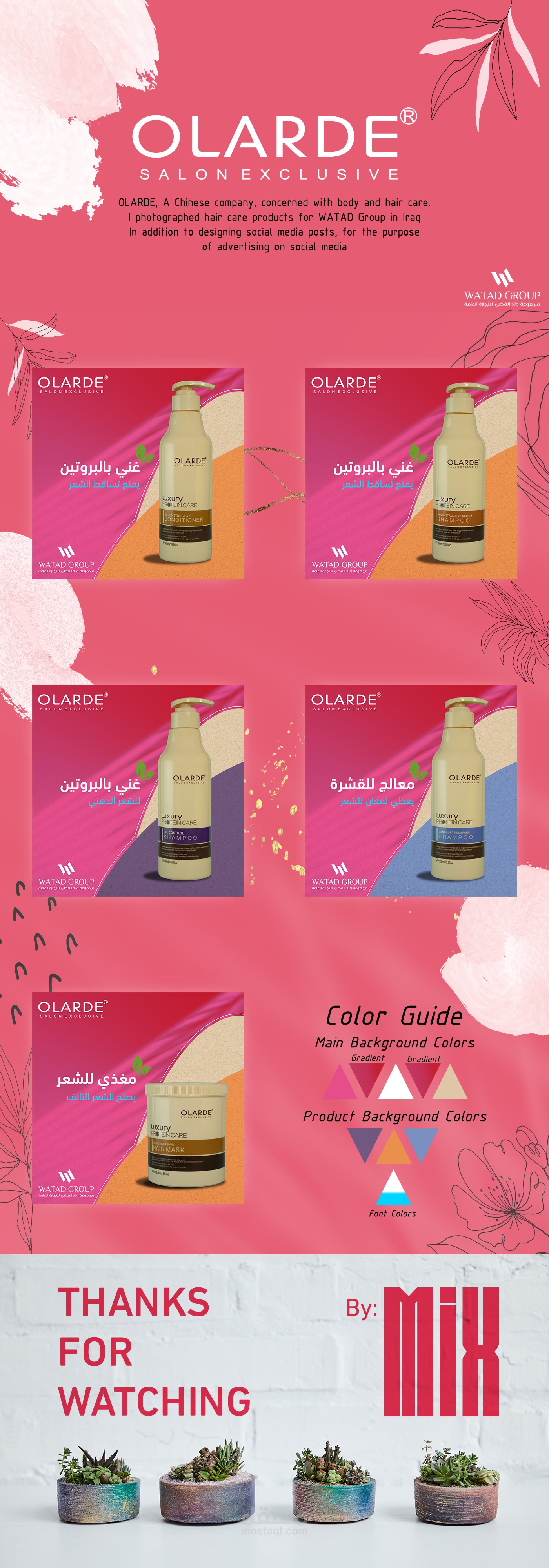 تم عمل الاعلانات الخاصة بالشركة لمنتجات العناية بالشعر وغيرها من قبلي وذلك عن طريق تصوير المنتجات وتجيهزها للاعلانات التجارية في السوشيال ميديا والقطع الضوئية في الطرقات وفي مراكز الشركة