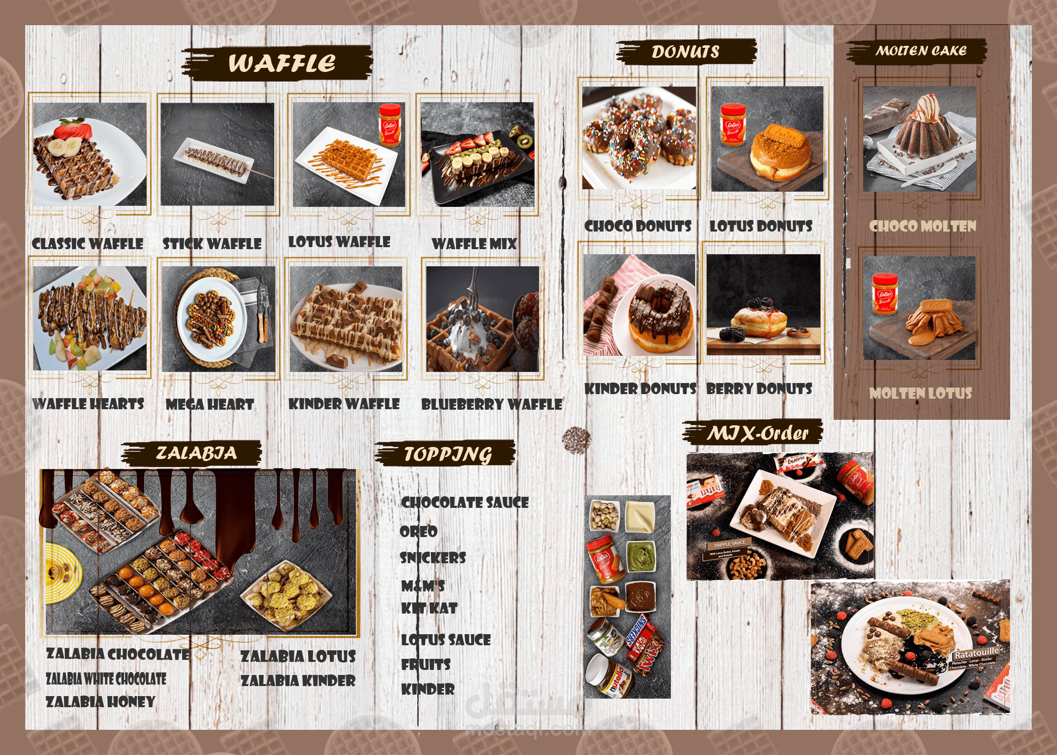 منيو للمطعم وافل مكون من شعار خاص وتصميم مميز وباركود