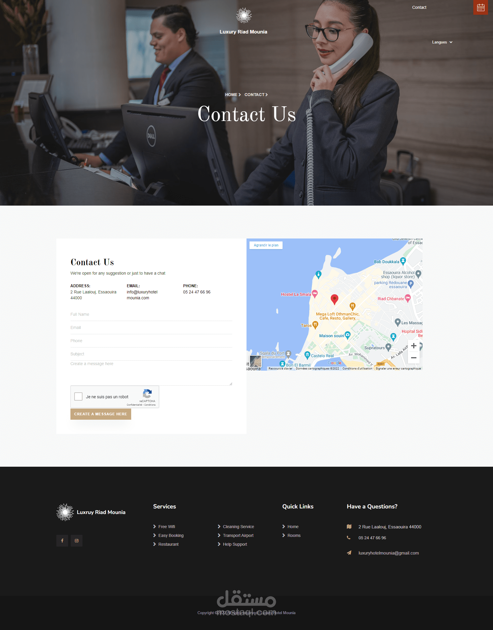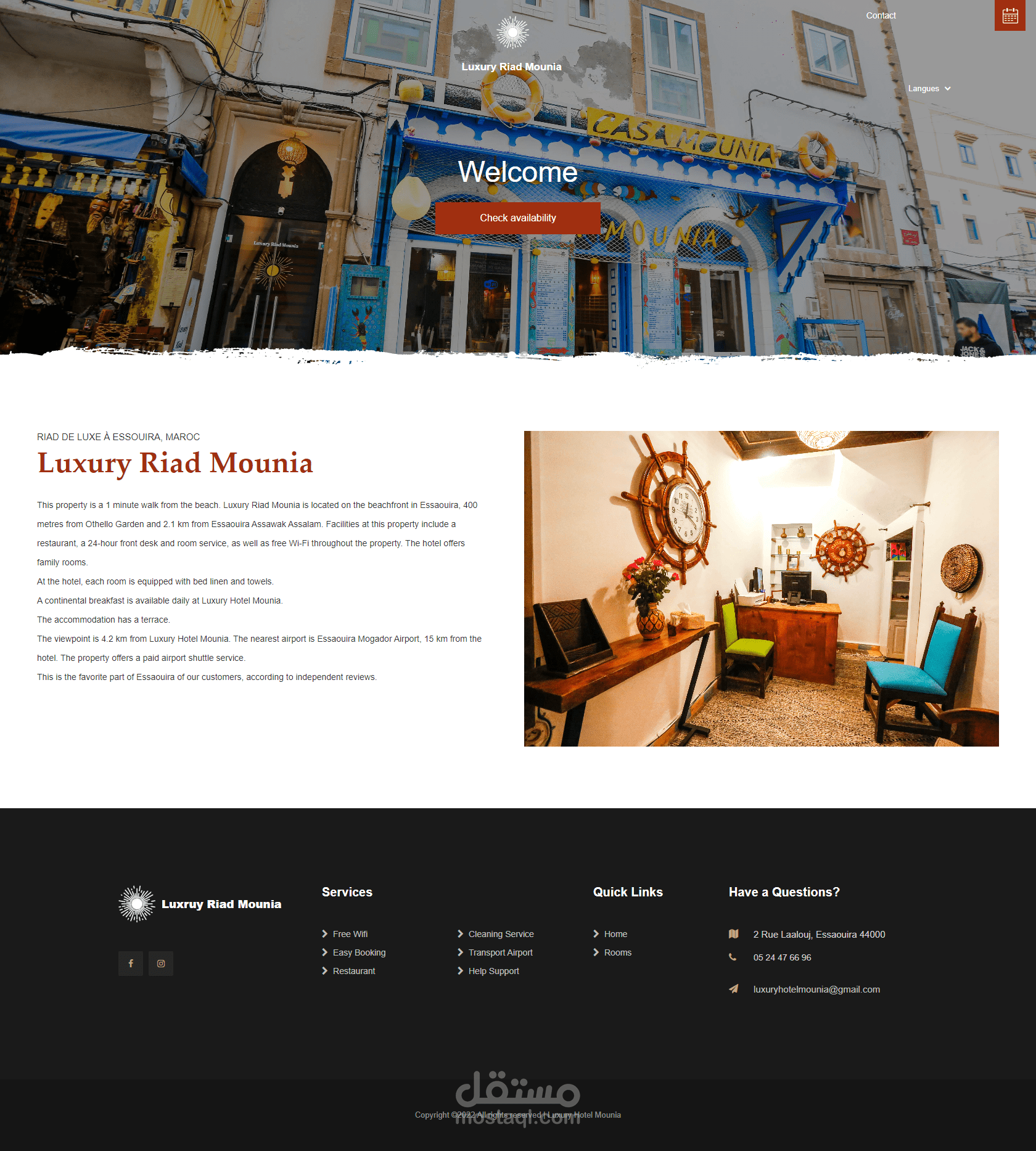 تم تصميم موقع Luxury Riad Mounia بواسطة فريق عمل متكون من مصمم جرافيك و مبرمج باحدت تقنيات