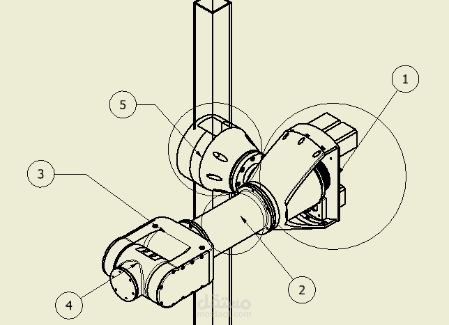 يهدف المشروع إلى دراسة تصميم وتنفيذ نموذج مصغر لروبوت تسلسلي بثلاث درجات حرية دورانية كمفصل الرسغ في الأذرع الروبوتية الصناعية ذات الدرجات الحرية الستة KUKA وذلك بخلوص ميكانيكي أصغري ومردود نقل استطاعة عال، حيث سيتم توضيع المحركات الثلاثة في الخلف (بداية الذراع الثانية) وتفعيل الروابط التسلسلية بطريقة غير مباشرة عن طريق ربط المحركات مع أنظمة سيور وبكرات مخددة متسلسلة لضمان نقل الحركة للمحور المطلوب. يضمن هذا التموضع جعل مركز عطالة الذراع الثانية للروبوت الصناعي ينطبق تقريبا على محور دوران الرابطة الثالثة وهو ما ينعكس إيجابا على النموذج الديناميكي للذراع ككل. يهدف المشروع أيضا إلى التحكم بموضع وسرعة الروابط الثلاثة بالحلقة المفتوحة والتحقق من أداء النموذج.