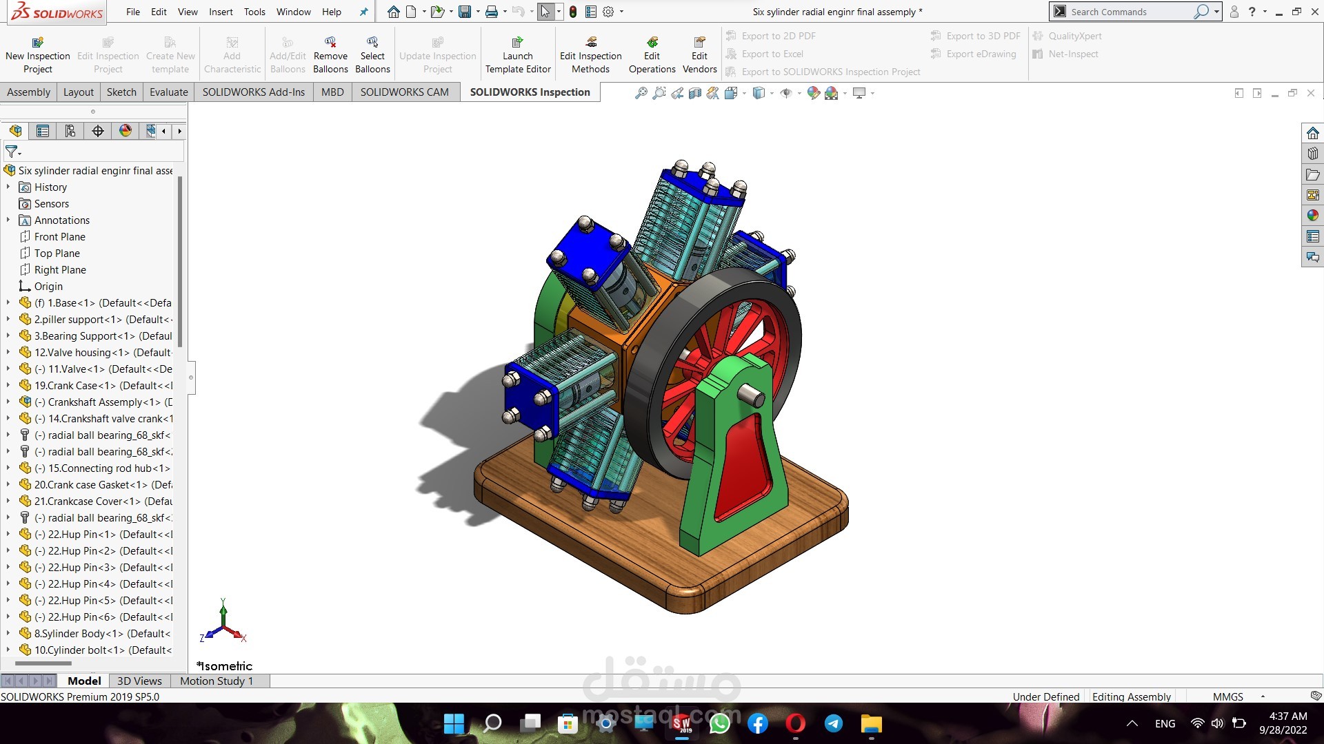 Six cylinder radial engine designed for the tail of a helicopter (parts drawn using Solidworks)