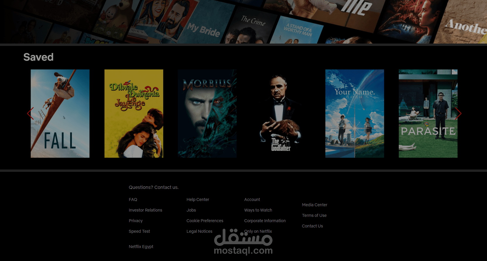 Netflix Clone عباره عن نسخه طبق الاصل من موقع نتفلكس العالمي مع api من خارجي, استخدم فيه تسجيل الدخول وتسجيل حساب عن طريق خاصيه firebase وفيه مكان لحفظ الافلام المفضله للمستخدم.