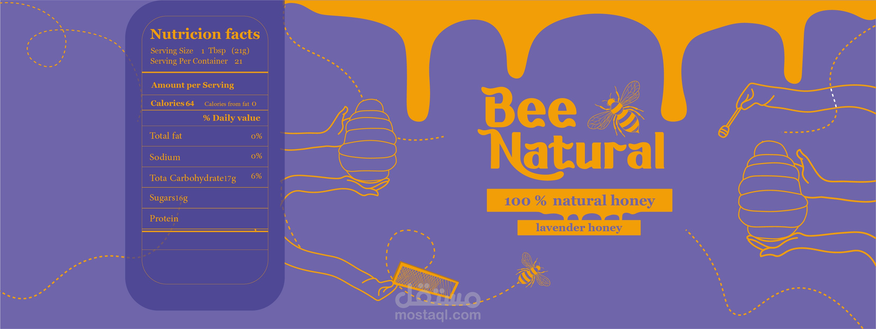 تصميم هويه بصريه كامله لشركة عسل bee natural