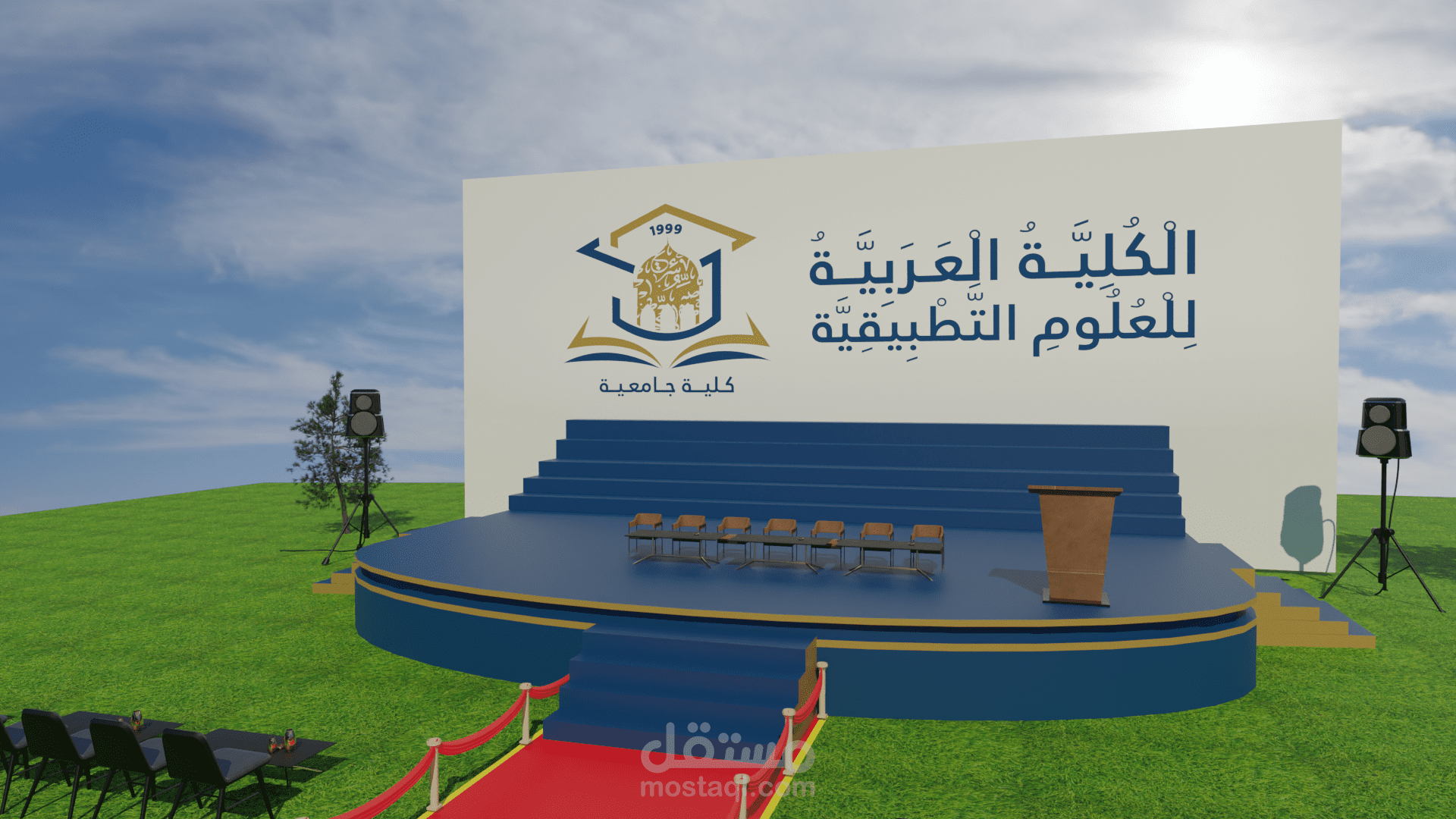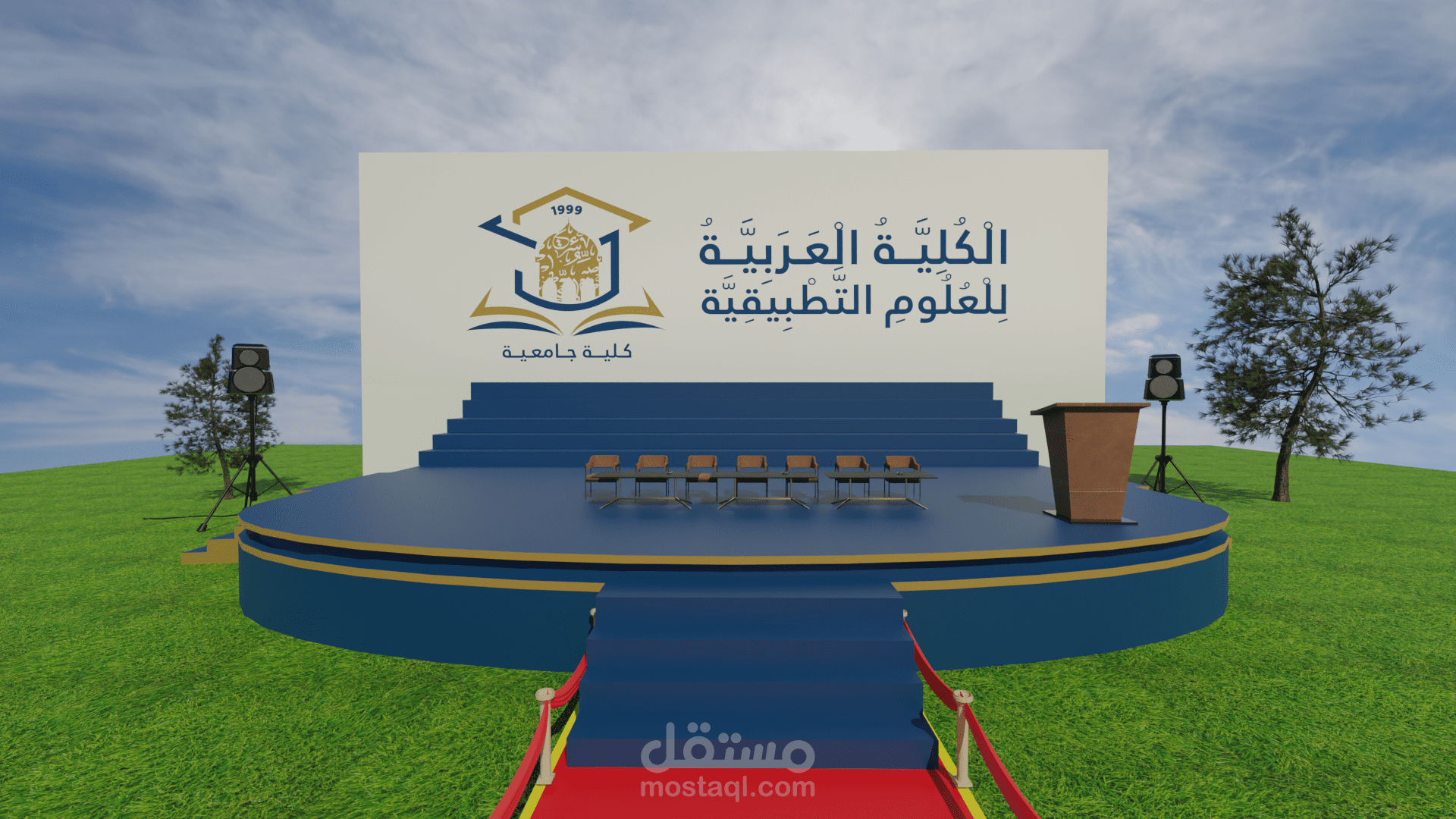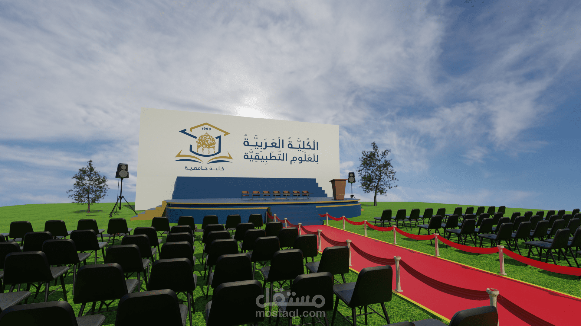 تصميم مسرح ثلاثي الأبعاد للكلية العربية للعلوم التطبيقية