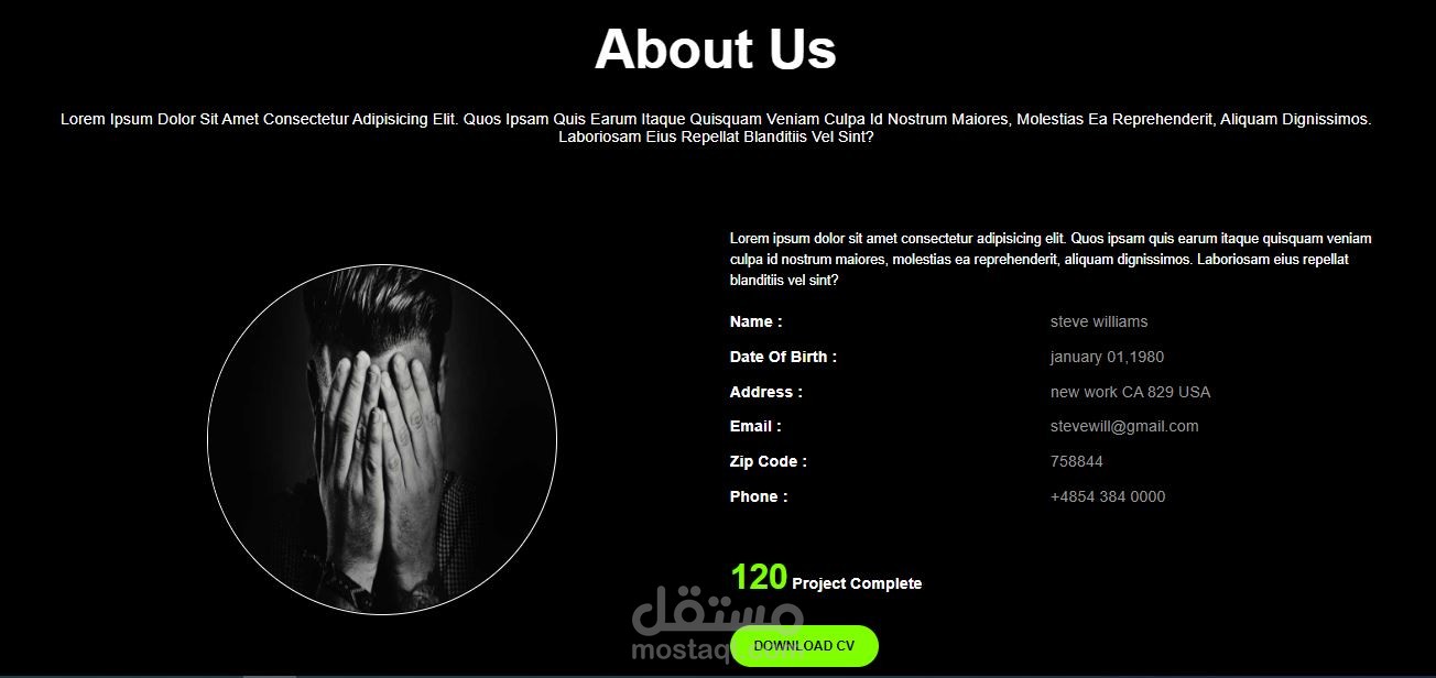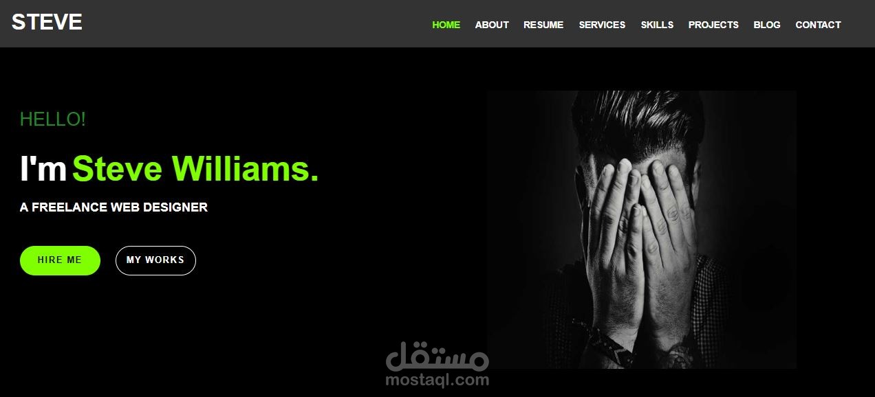 قمت بتصميم موقع شخصي عبارة عن معرض اعمال و نبذة تعريفية لمصمم
