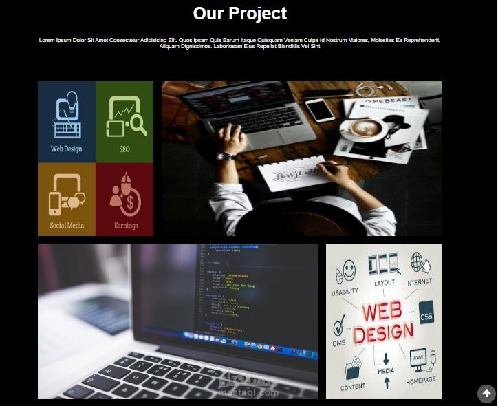جرافيك و ويب, الموقع يحتوي على سلايدر للمشاريع وللتعليقات