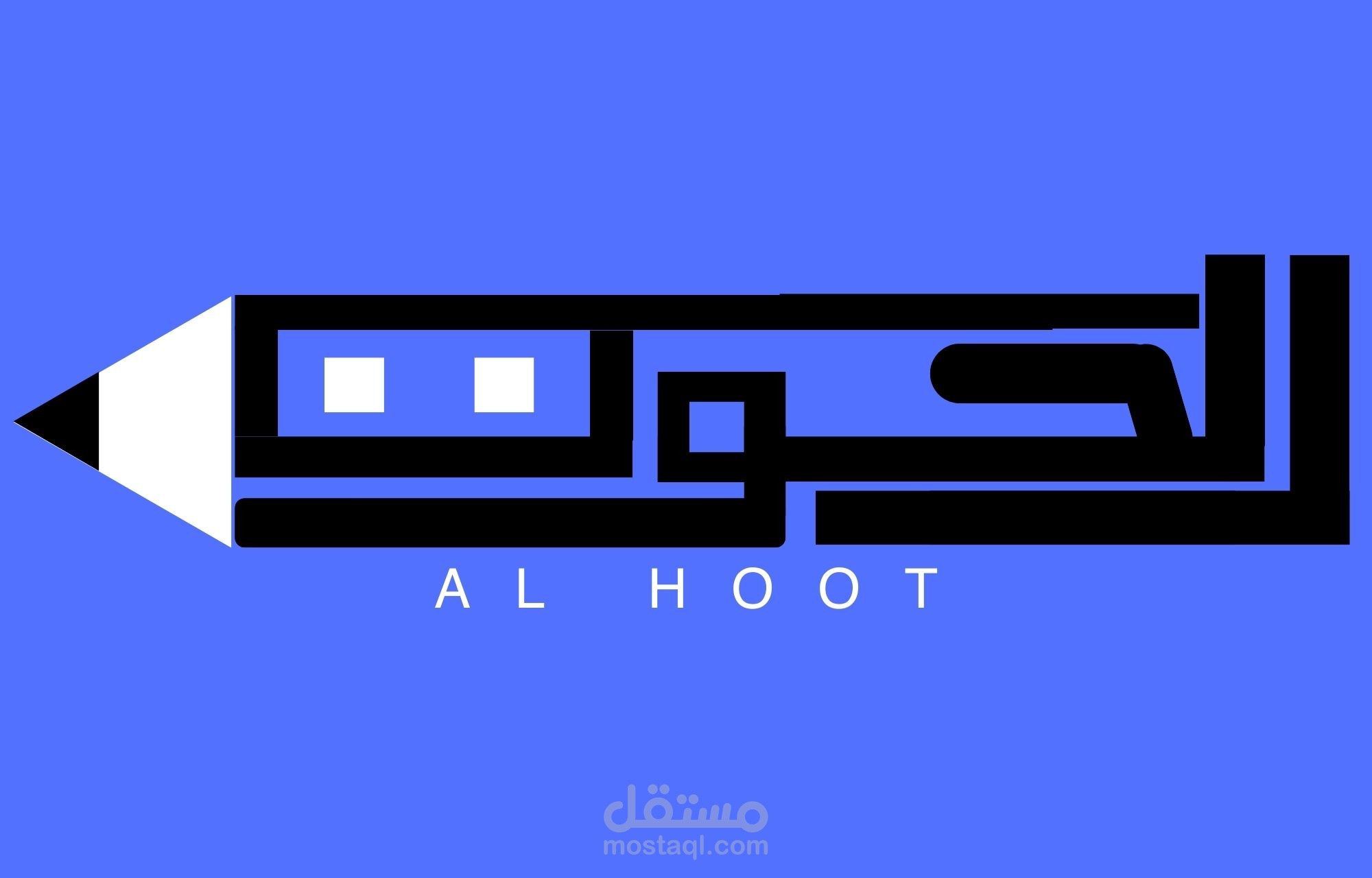 لوجو بإسم الحوت لمدرس أحياء بالخط الكوفي على شكل قلم