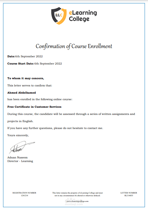 free certificata in customer sevices