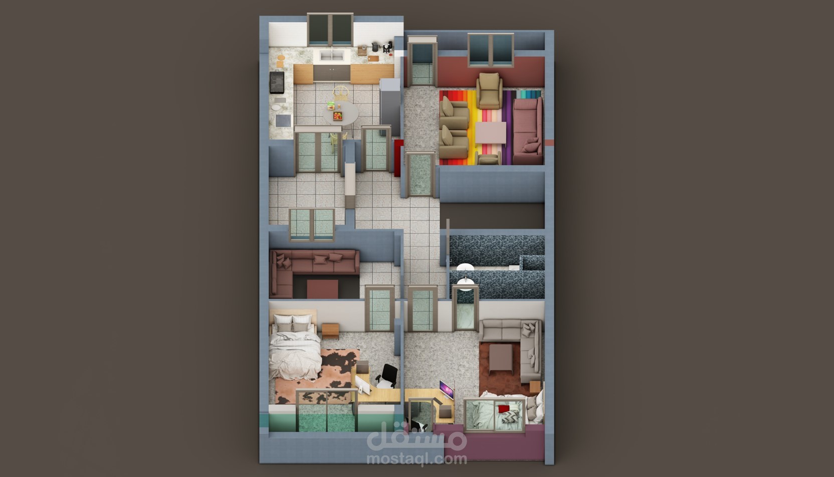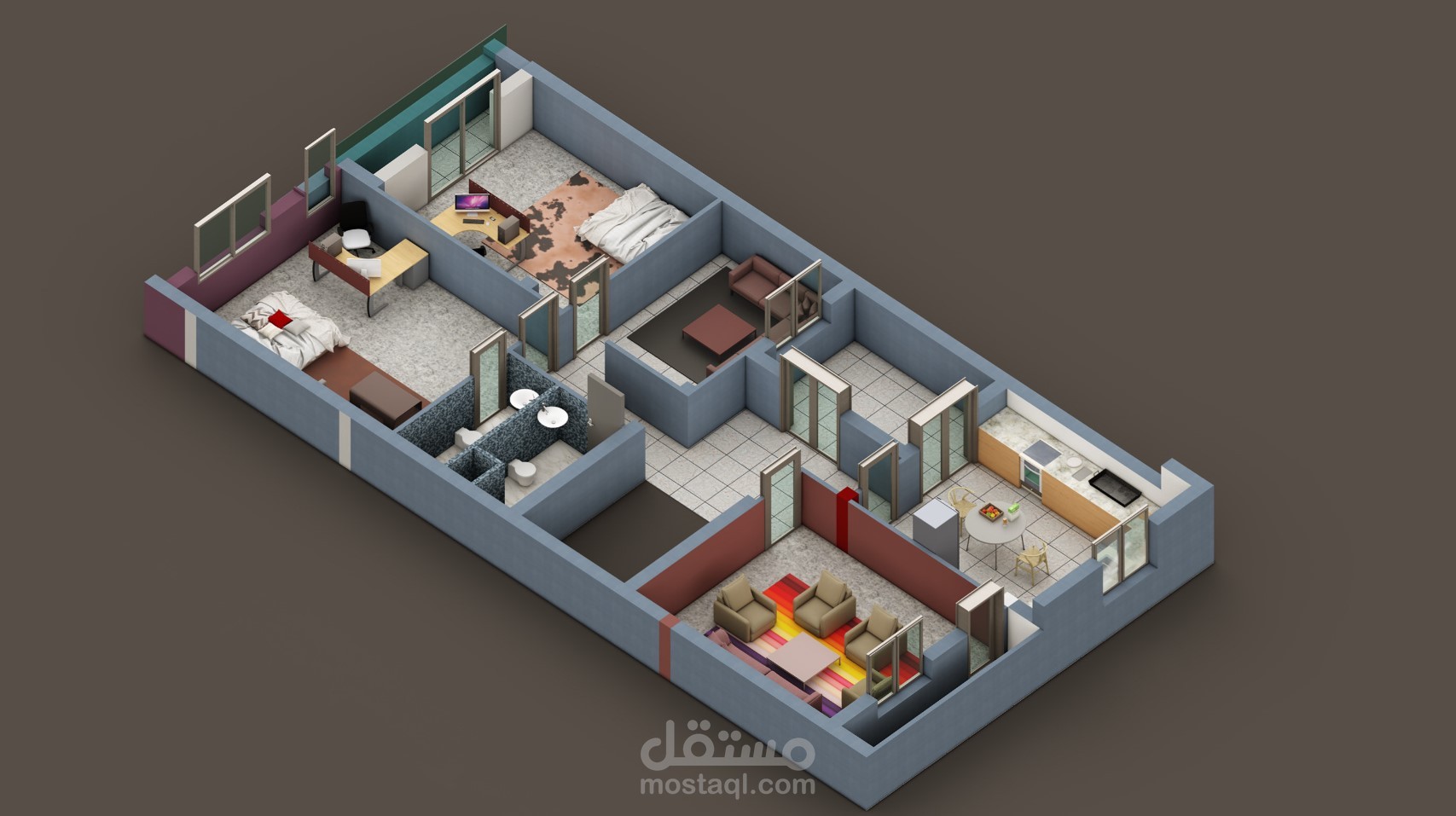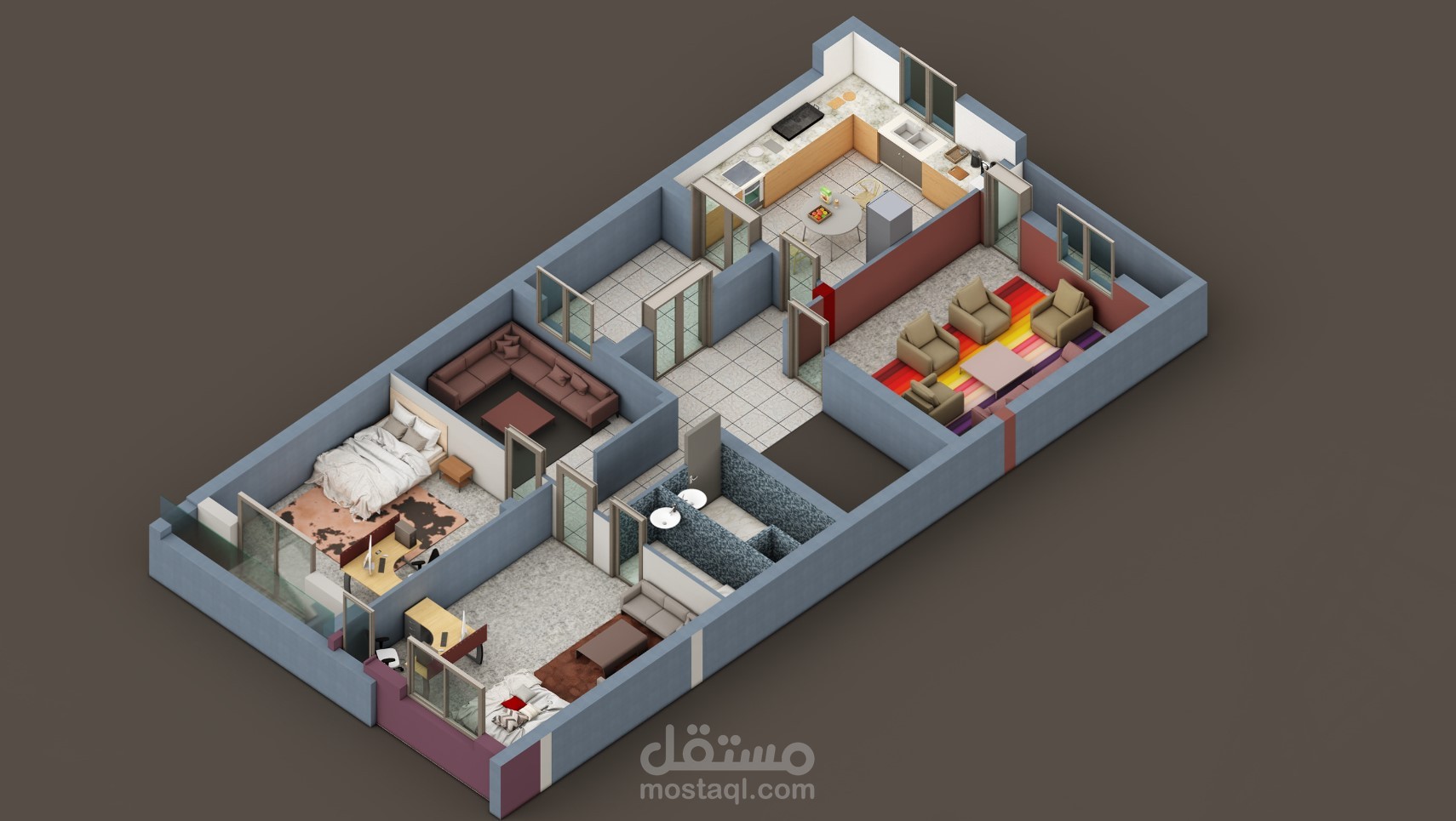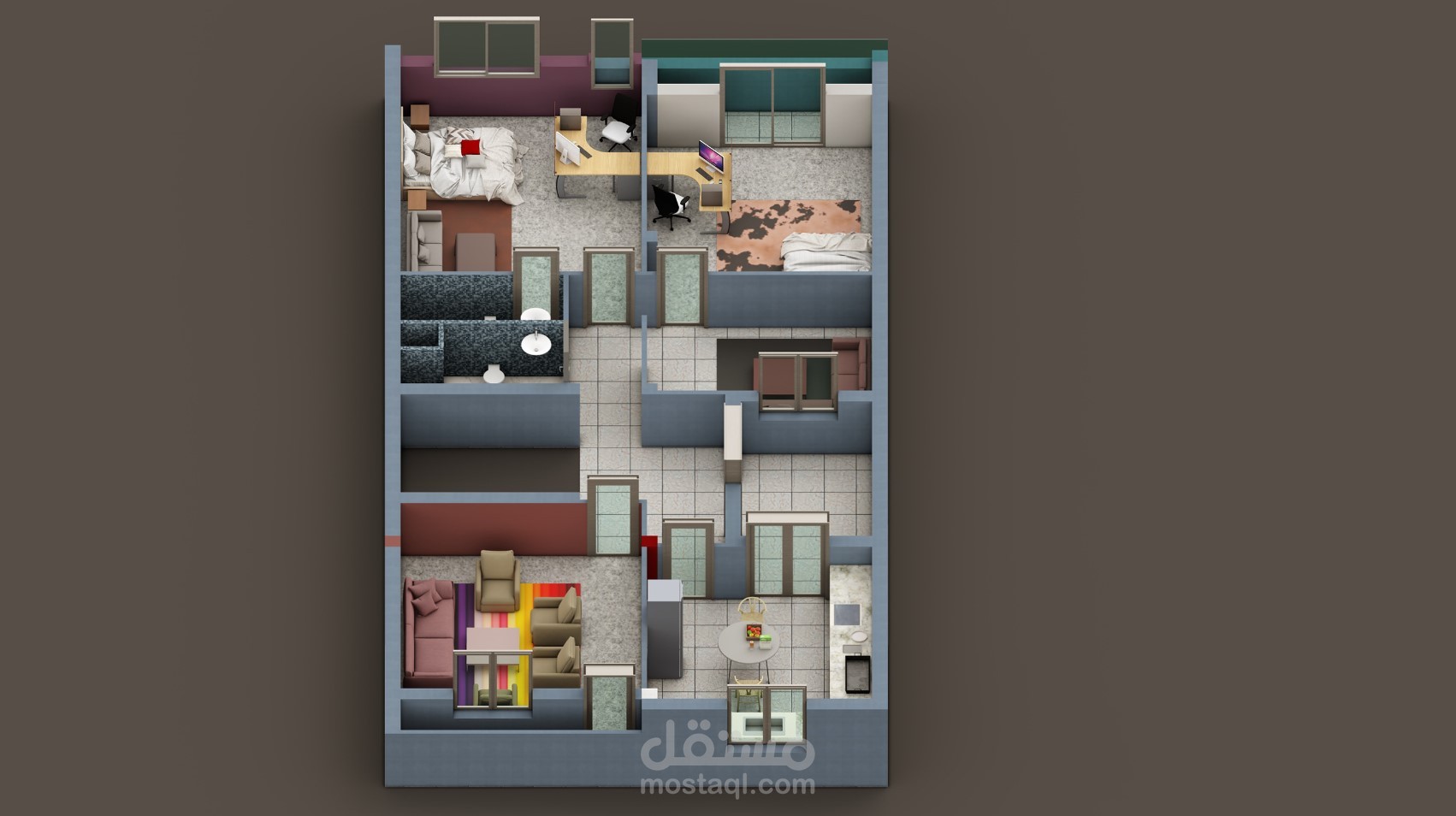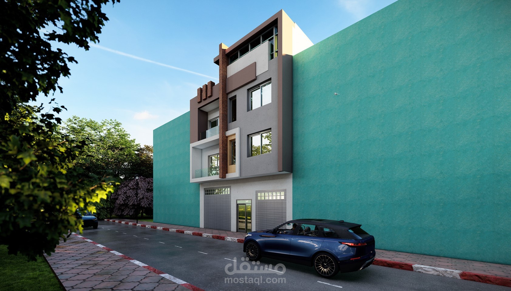 In this case, in a land of 180 m2 with a single facade we have set up this small building consisting of 3 apartments, a warehouse in the basement and a large store. The exterior has been designed with the aim of reflecting the functions of the different spaces and at the same time ensuring the beauty of a well-organized modern architecture with well-arranged architectural elements and the use of various materials has ensured the harmony of the whole. To better present this architectural production, we took the best points of view. Delighted to see our project under construction