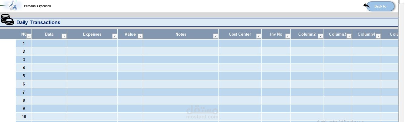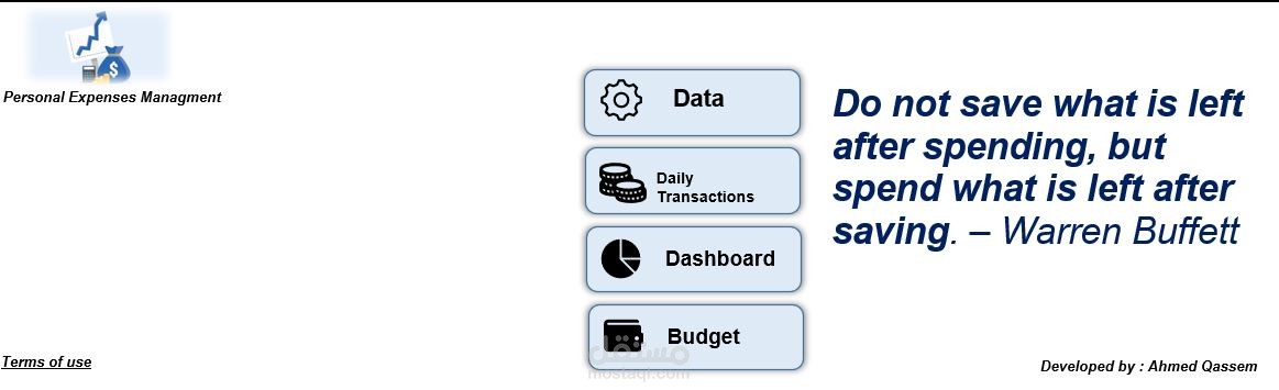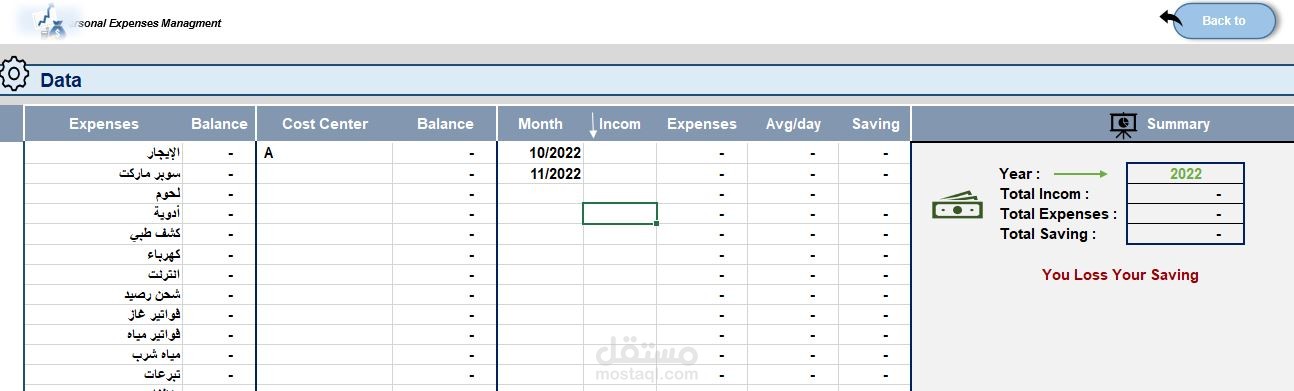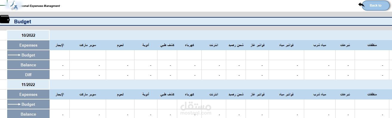 من خلال موقع خمسات وفي ذلك المشروع تم تصميم ملف على الأكسيل لمتابعة وتحليل المصروفات الشخصية لاحد العملاء