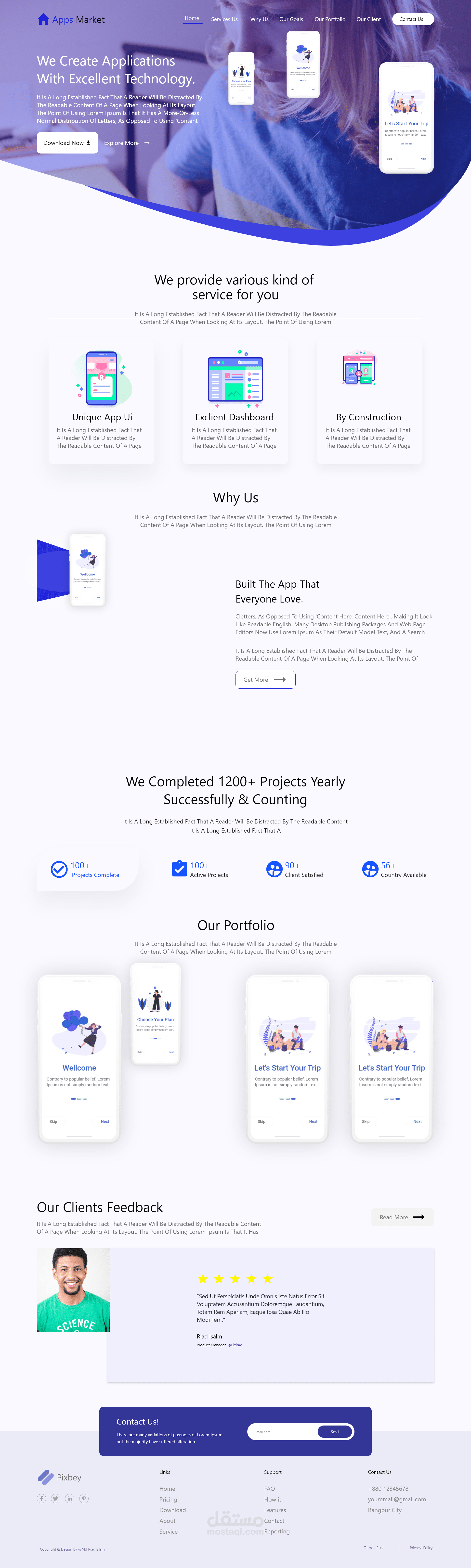 صفحة هبوط لشركة مختصة ببرمجة تطبيقات هواتف محمولة