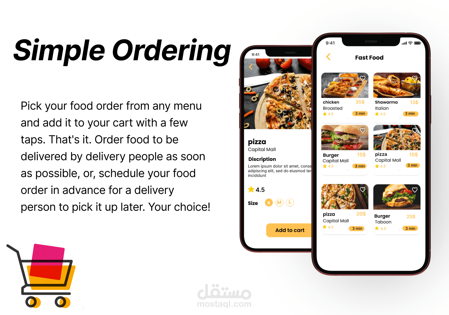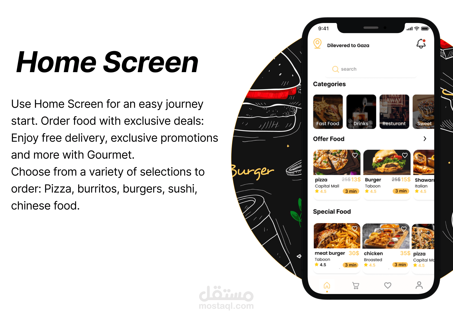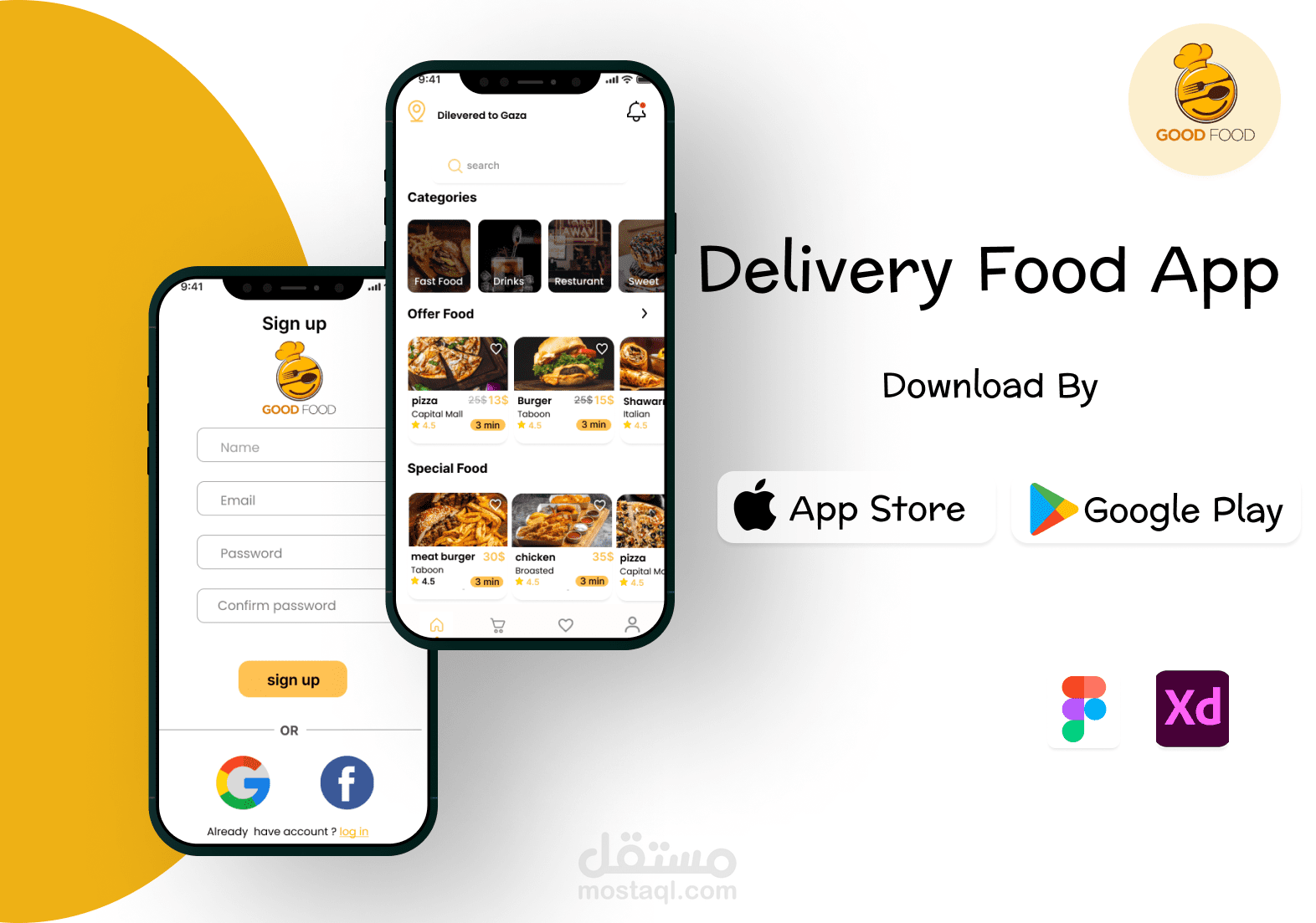 تطبيق توصيل الطلبات من العديد من المطاعم المختلفه,باستخدام إطار العمل Flutter,التطبيق يعمل علي الهواتف الAndroid وIos,التطبيق قدد صمم باحترافيه عالية من ناحية تصميم الواجهات ,وكتابه كود نظيف الذي من السهل التعديل عليه في اي وقت,وذلك لاستخدام مبدأ ال state management.