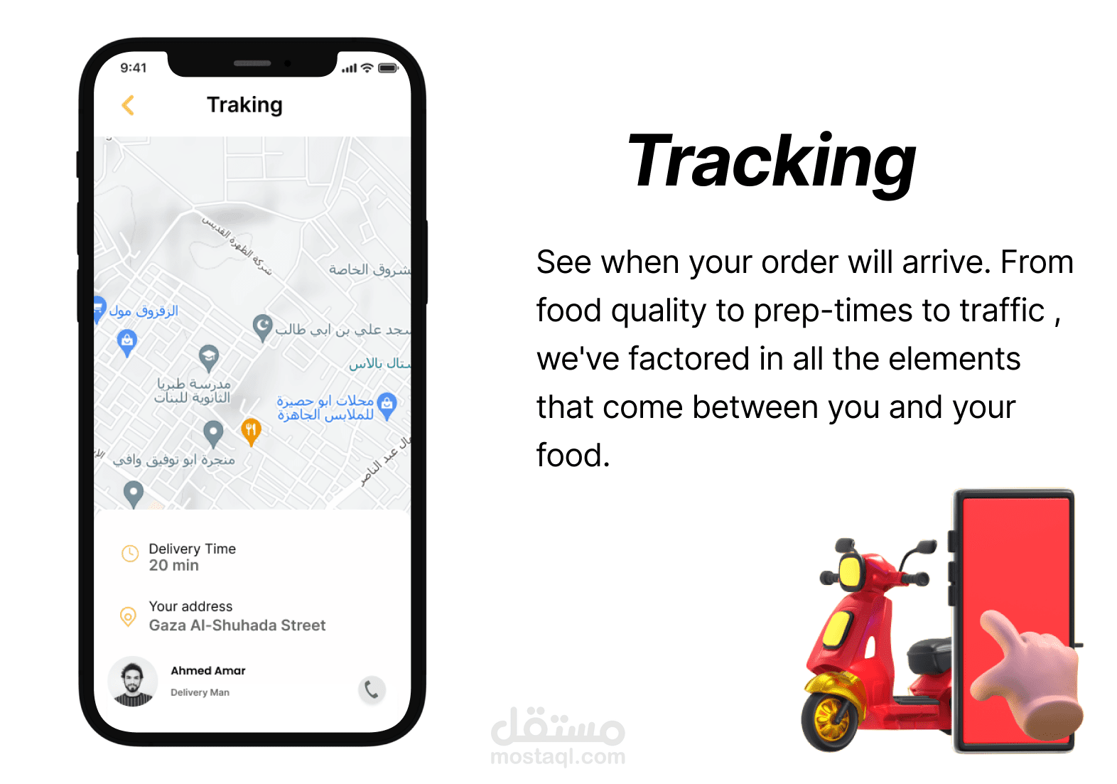 2-استخدام خريطه جوجل لتحديد مكان المستخدم ,ورجل التوصيل علي الخريطه وعرض الوقت المحدد لوصول الطلب وإمكانيه المستخدم لتعقب رجل التوصيل علي الخريطه.
