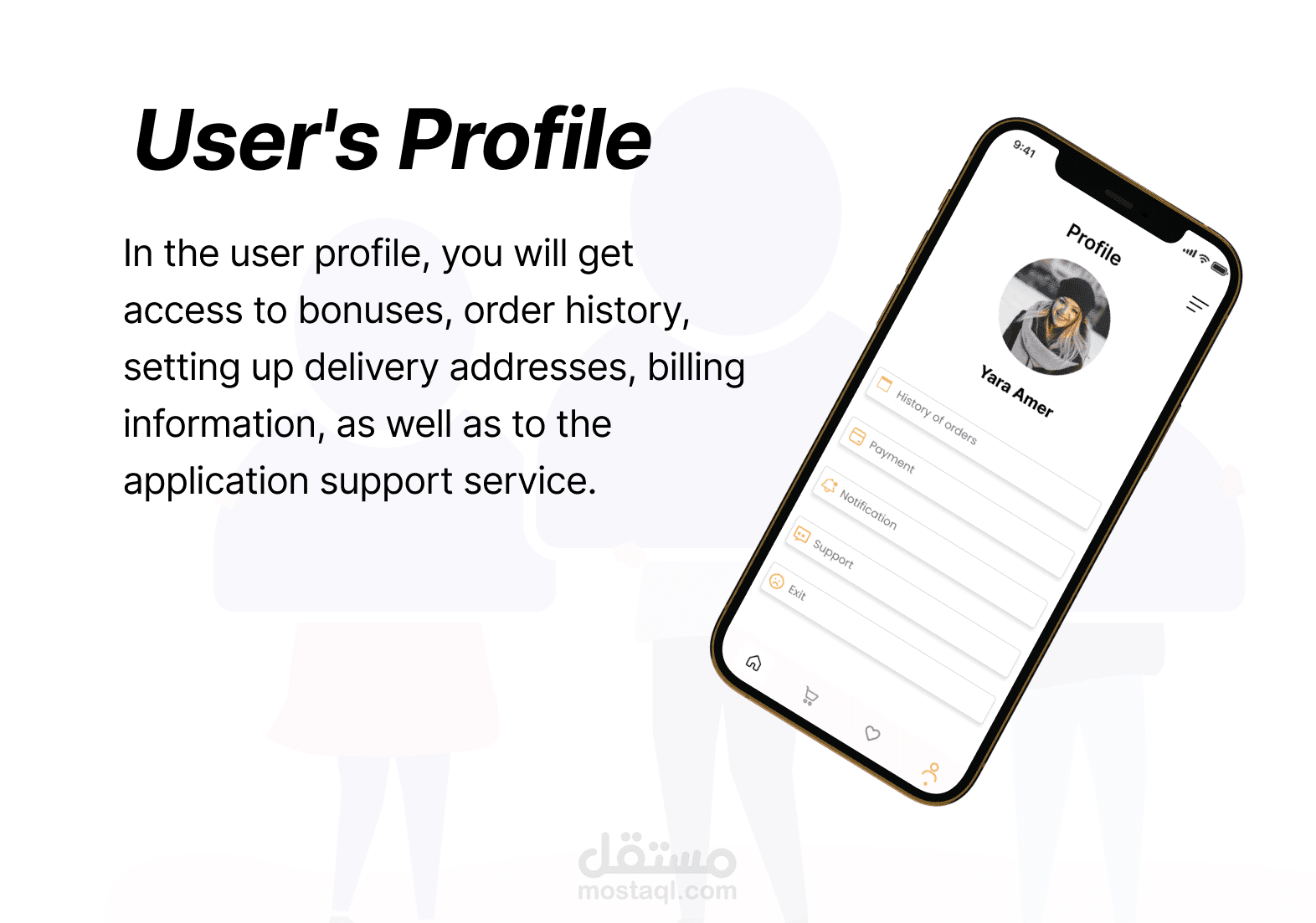 4-لكل مستخدم الحساب الخاص به الذي عن طريقه يستطيع ان يتحكم في الصوره الشخصيه خاصته,الطلبات,وبطاقات الأتمان التي يمتلكها.