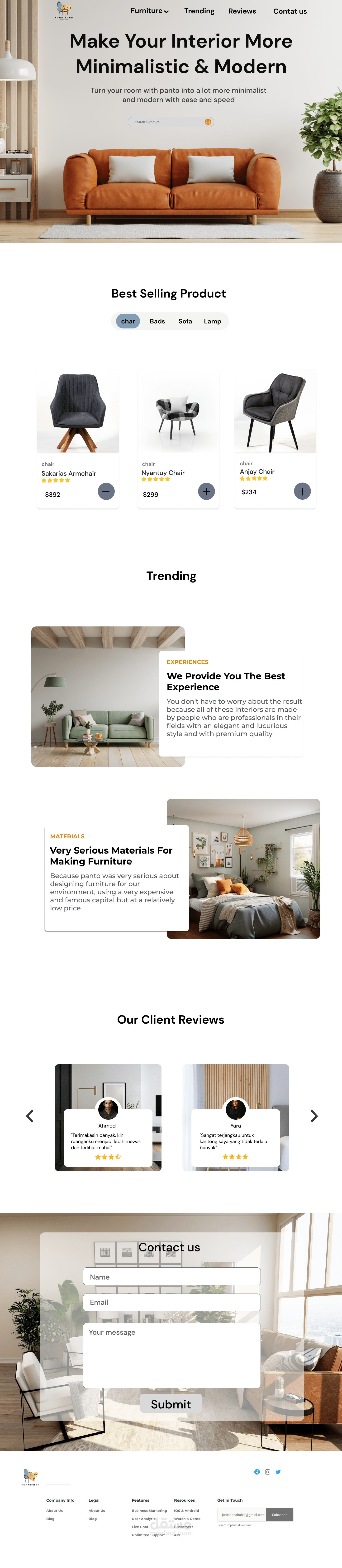 تصميم صفحة هبوط لبيع أثاث البيت، تصميم يظهر الأقسام و أخر العروض بالإضافة عن معلومات كاملة عن المستثمر و طريقة عمله.