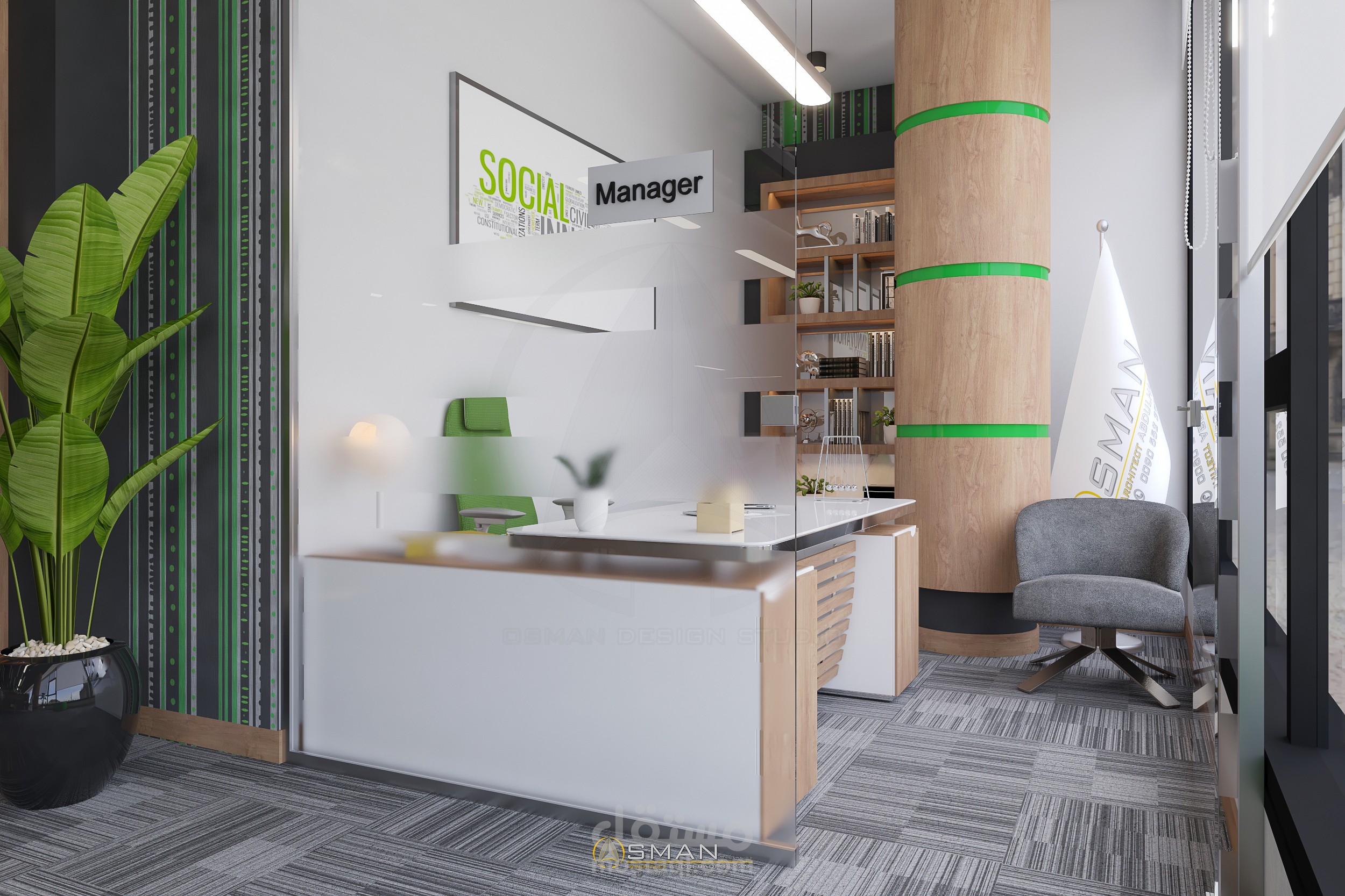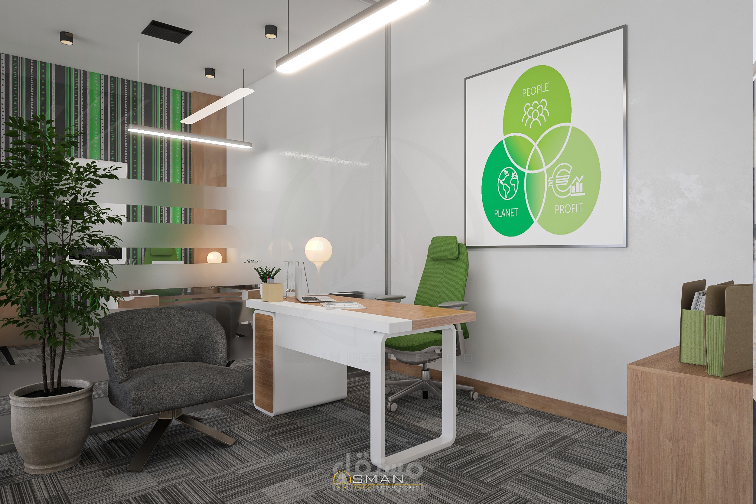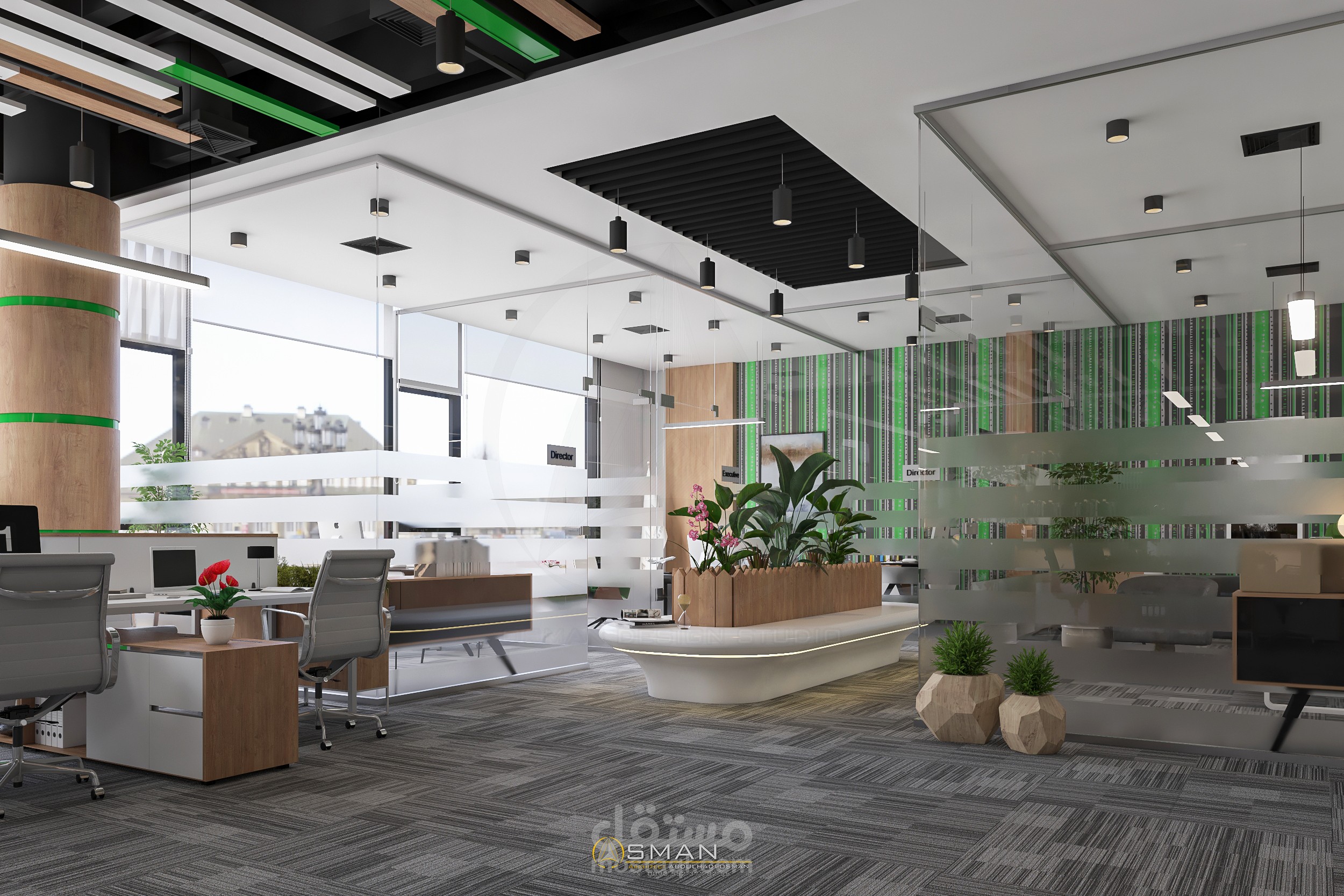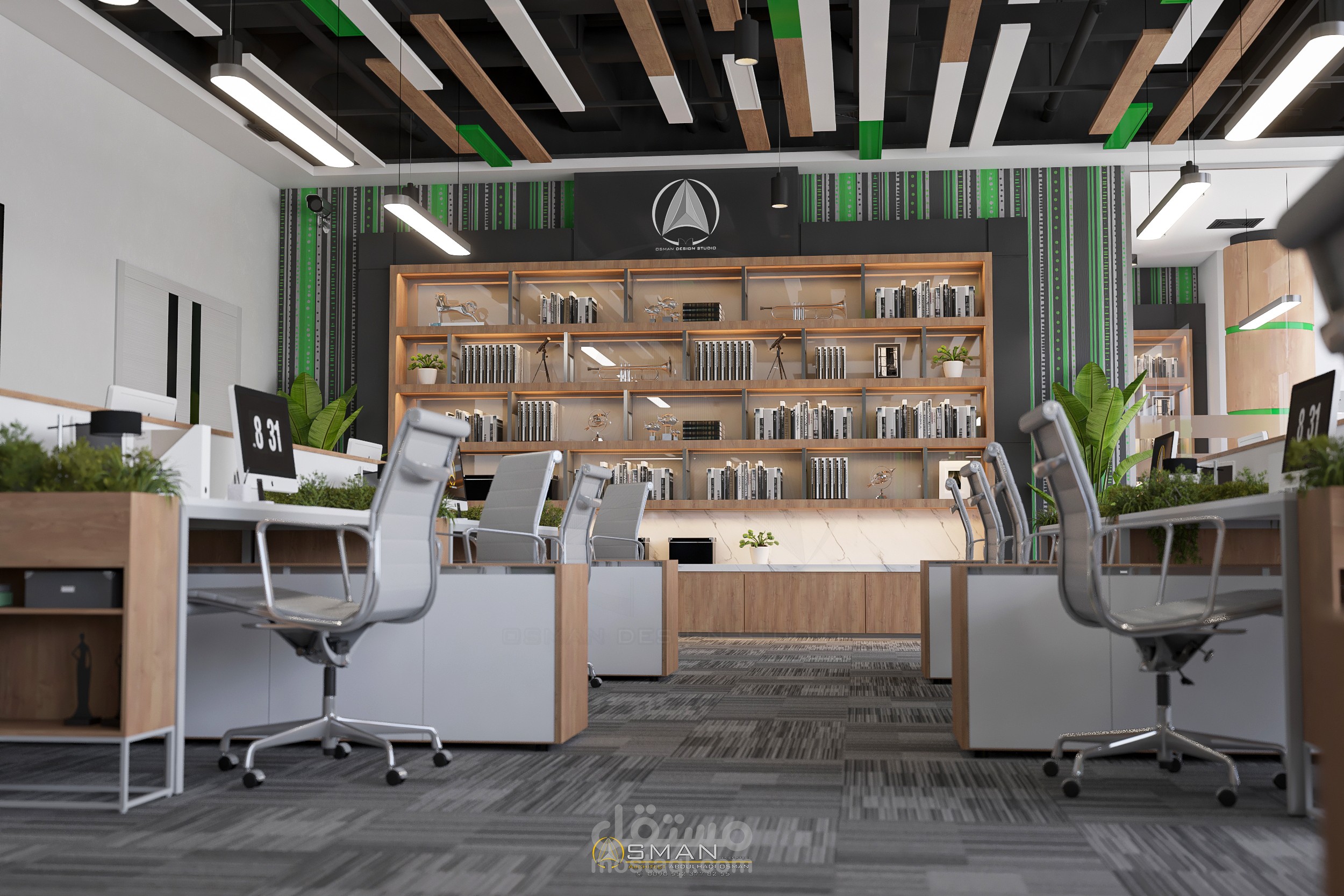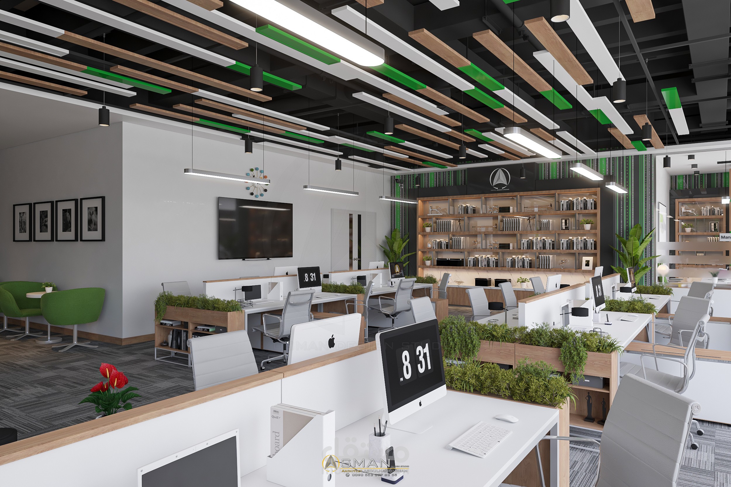 تصميم مكاتب بمساحة مفتوحة مع انارة طبيعية و الوان هادئة يجعل مكان العمل ممتعًا مليئًا بالطاقة.
