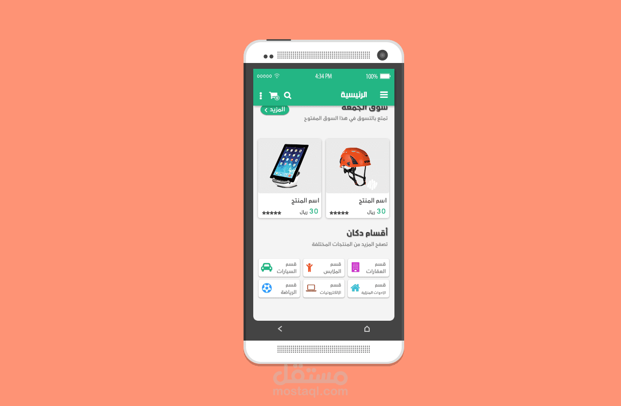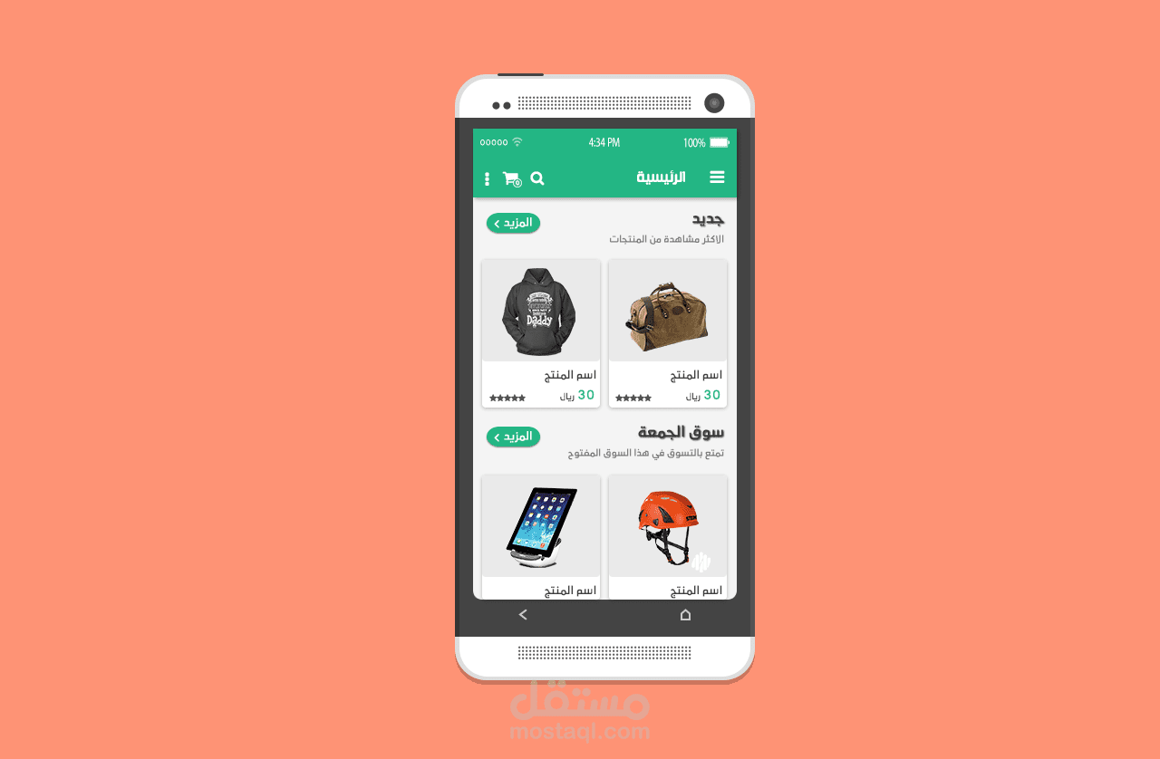 تصميم تطبيق للتجارة الالكترونية على الاندرويد بشكل عصري ومتطور ، يعرض مختلف التصنيفات ومنها الى المنتجات ، وغيرها من التصميمات .