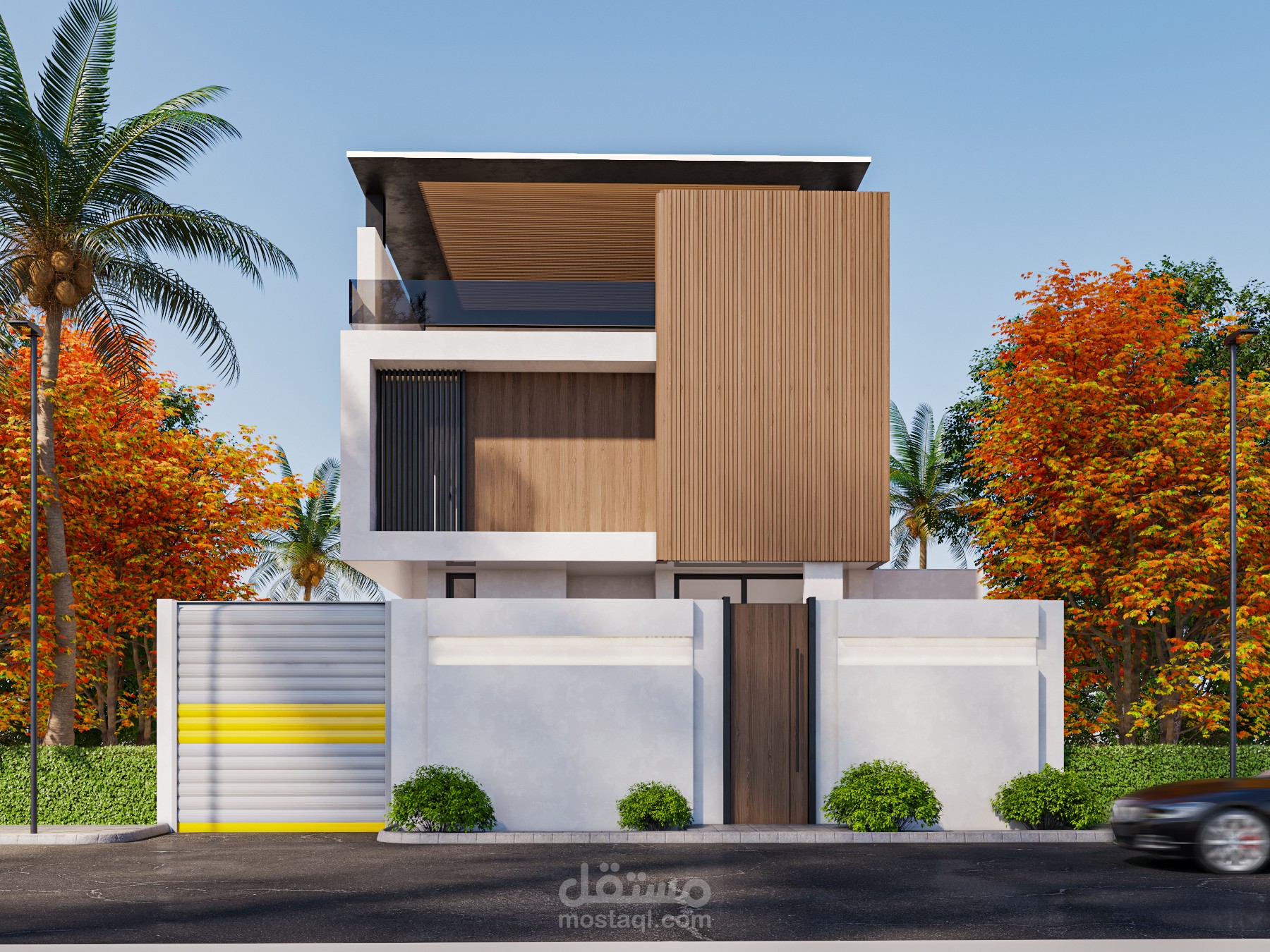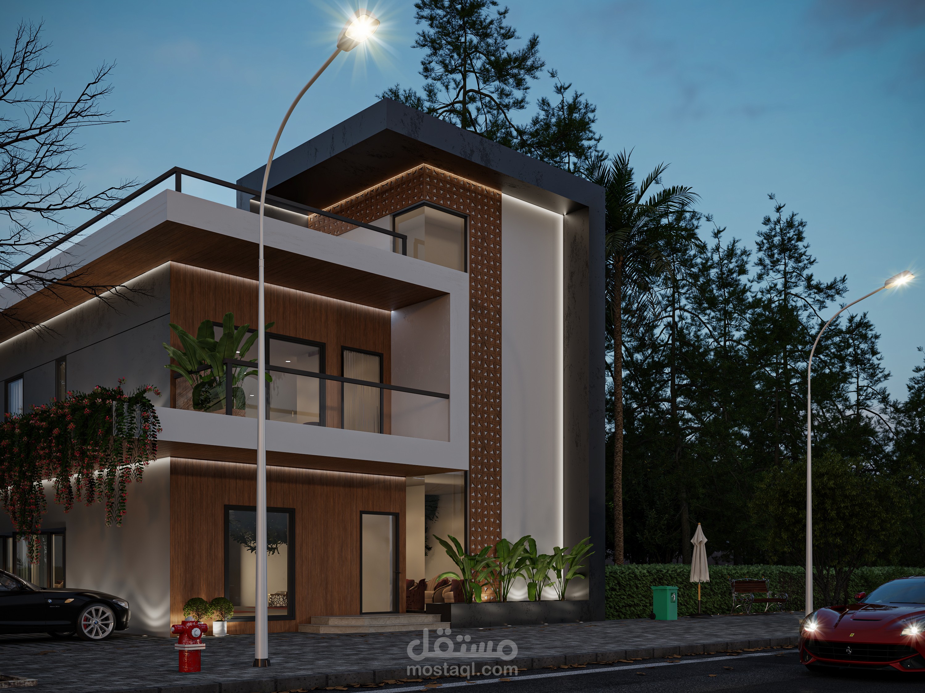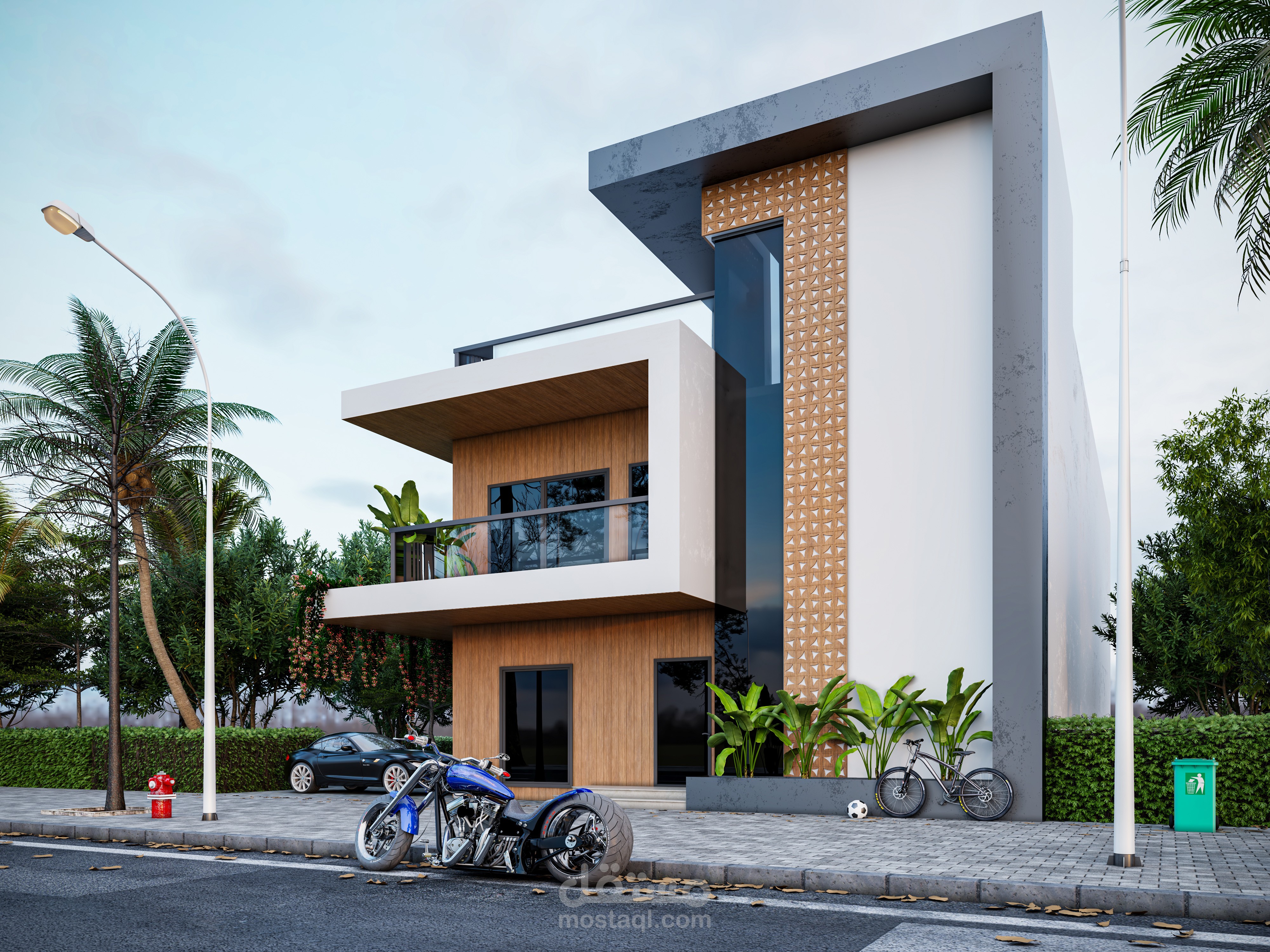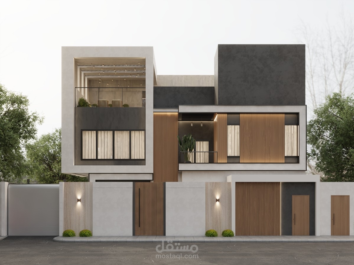 إظهار واجهات فيلا مودرن حديثة، بدقة عالية واحترافية