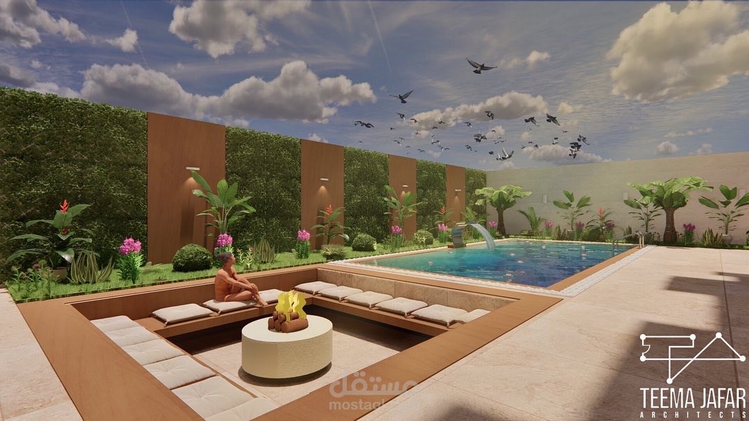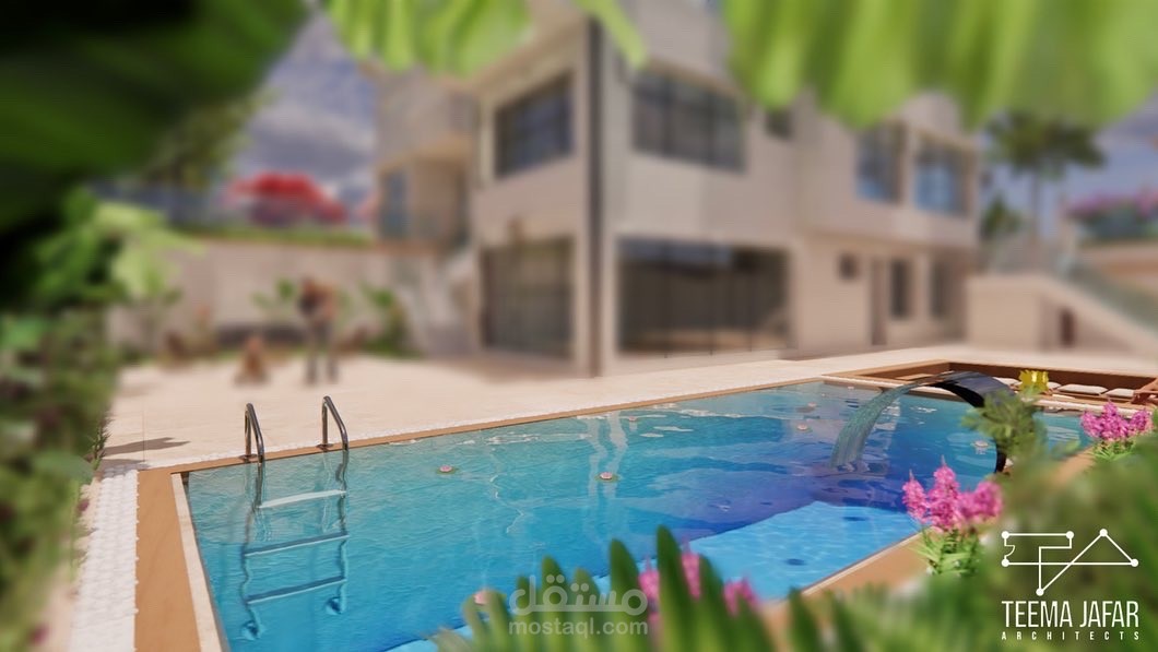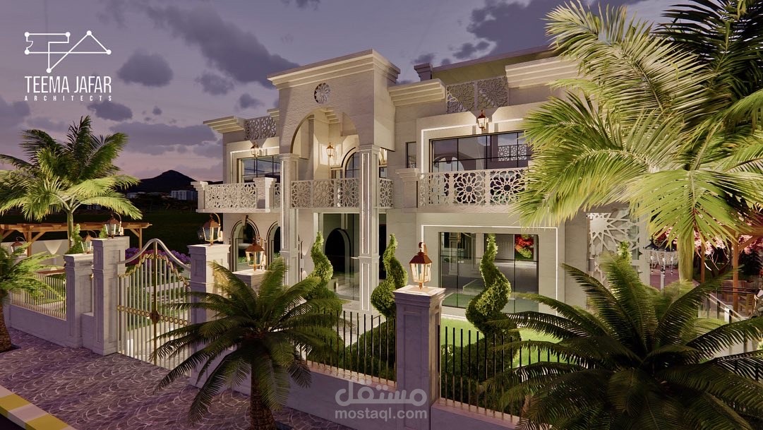 تصميم فيلا في الاردن - السلط ، على الطراز الاسلامي الحديث ذو الطابع الفخم مع تصميم المساحات الخارجية بمزيج من الطراز الياباني و الحديث و المتعارف عليه بالدول العربية بناءً على طلب العميل.