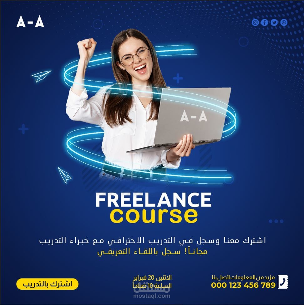 تصميم سوشيال ميديا - لصالح مركز دورات - FREELANCE COURSE - بواسطة برامج أدوبي - اعمالي السابقة