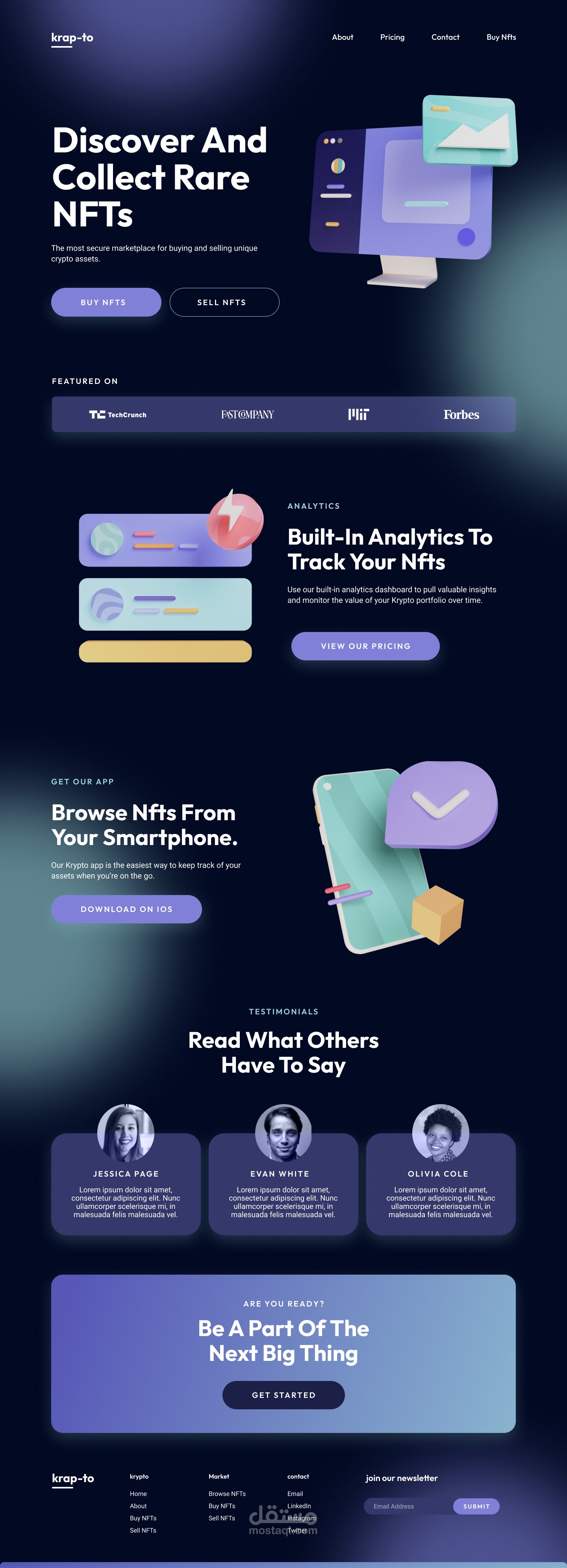 تصميم صفحة هبوط خاصة بموقع تداول العملات الرقمية.