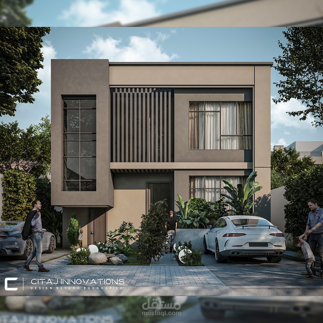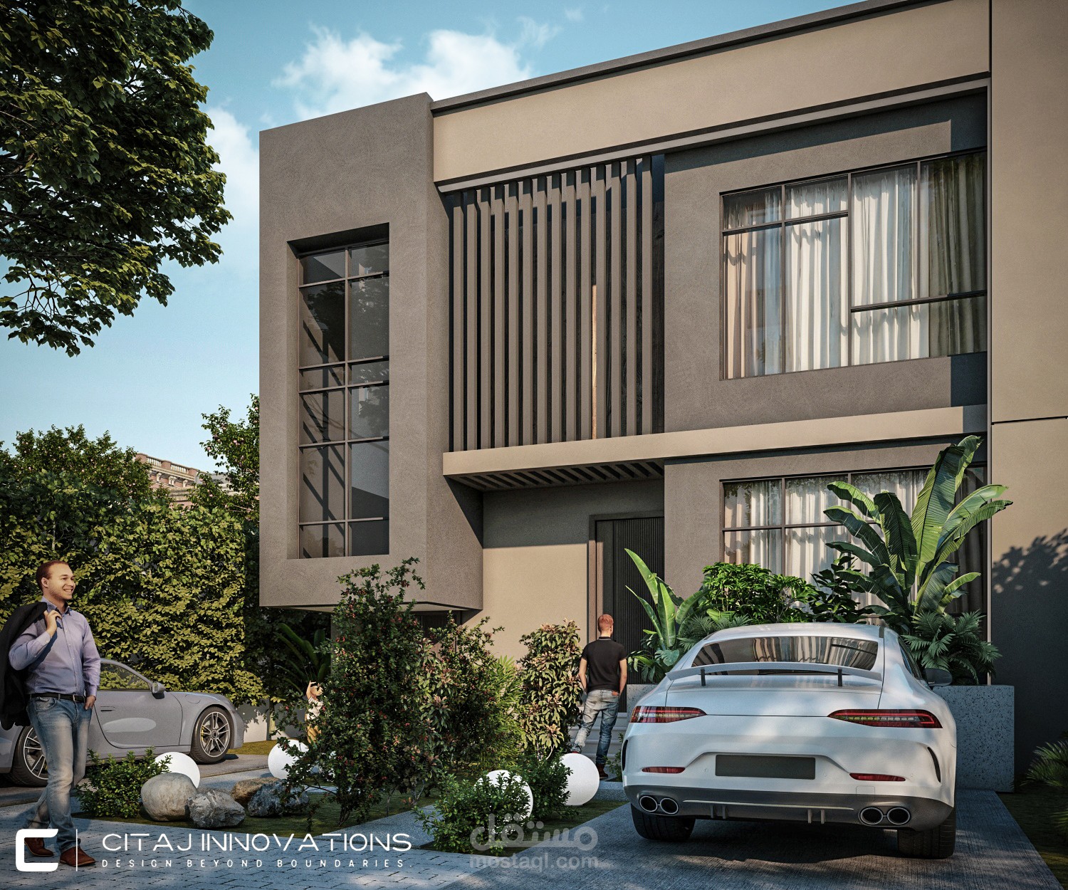 آخر أعمالنا بفضل الله تعالى لثلاثي الابعاد لفيلا عصرية ذات ثلاث طوابق بواجهة مودرن بسيطه و مميزة