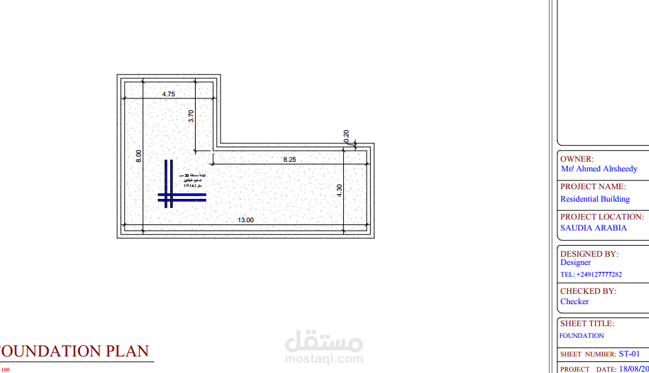 تم عمل تصميم إنشائي لمسبح نوع اوفر فلو واخراج المخططات الانشائية عبر برنامج الريفيت وحساب كميات الخرسانة وحديد التسليح للمسبح