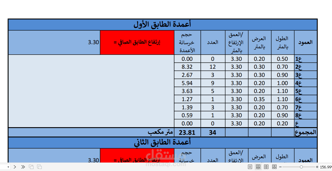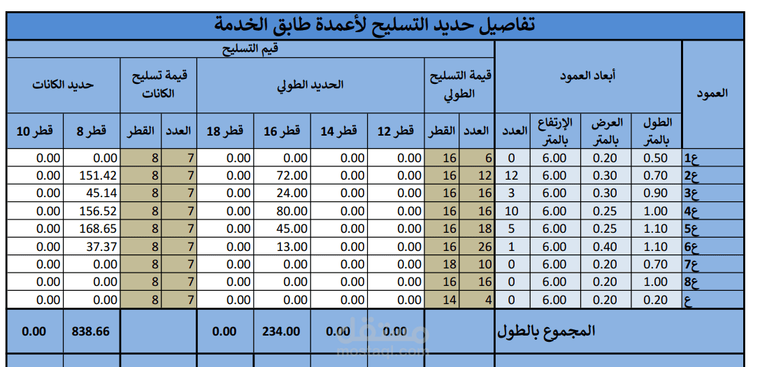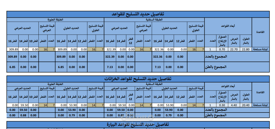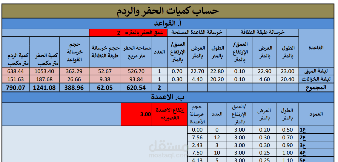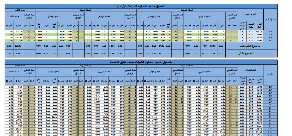 تم عمل جداول حساب كميات تفصيلية ببرنامج الاكسيل تتضمن كميات
