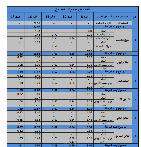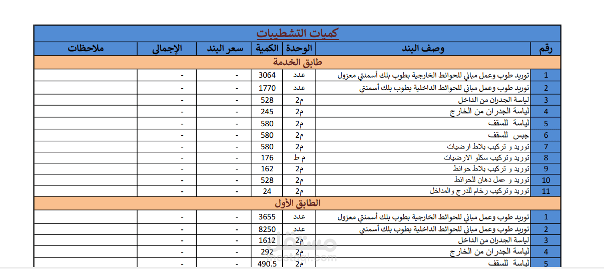 وعمل مستخلص للكميات النهائية للعمارة