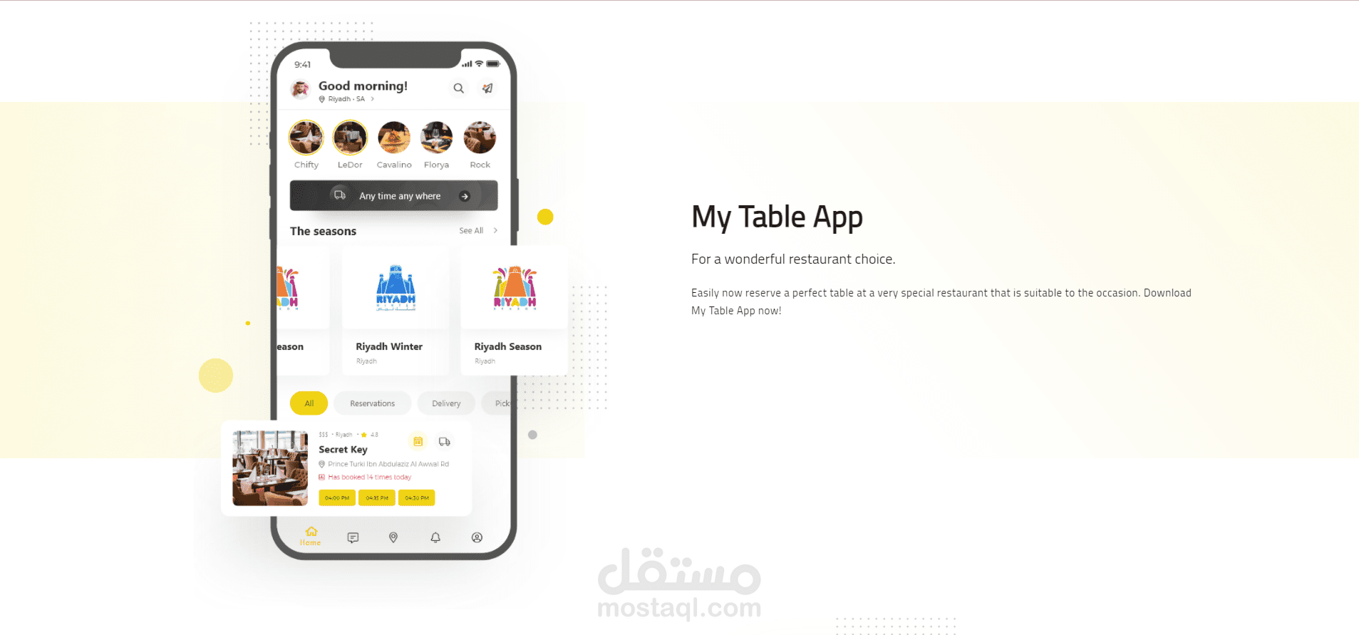 It is an application and website for reservations in restaurants in Saudi Arabia, which contains the latest technologies in the field of table distribution, customers and reservations, in addition to a special section for social media.