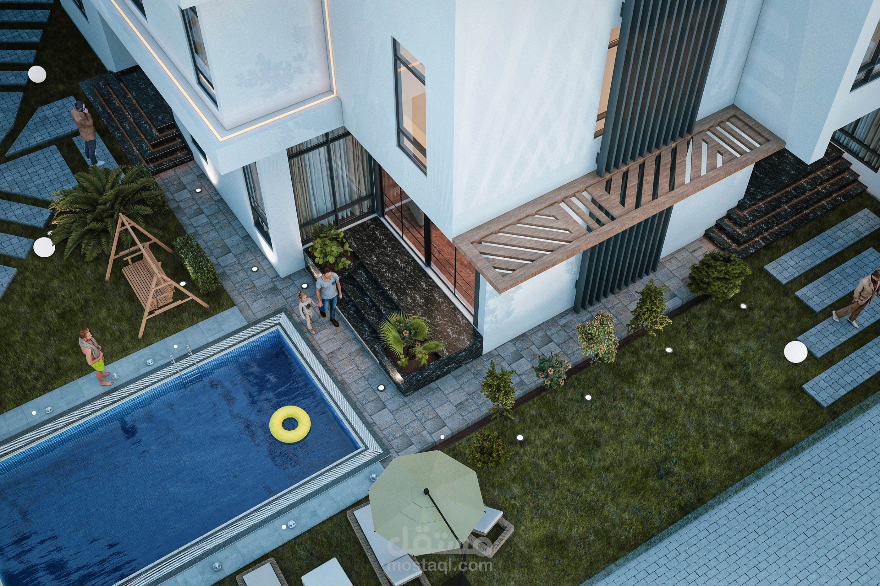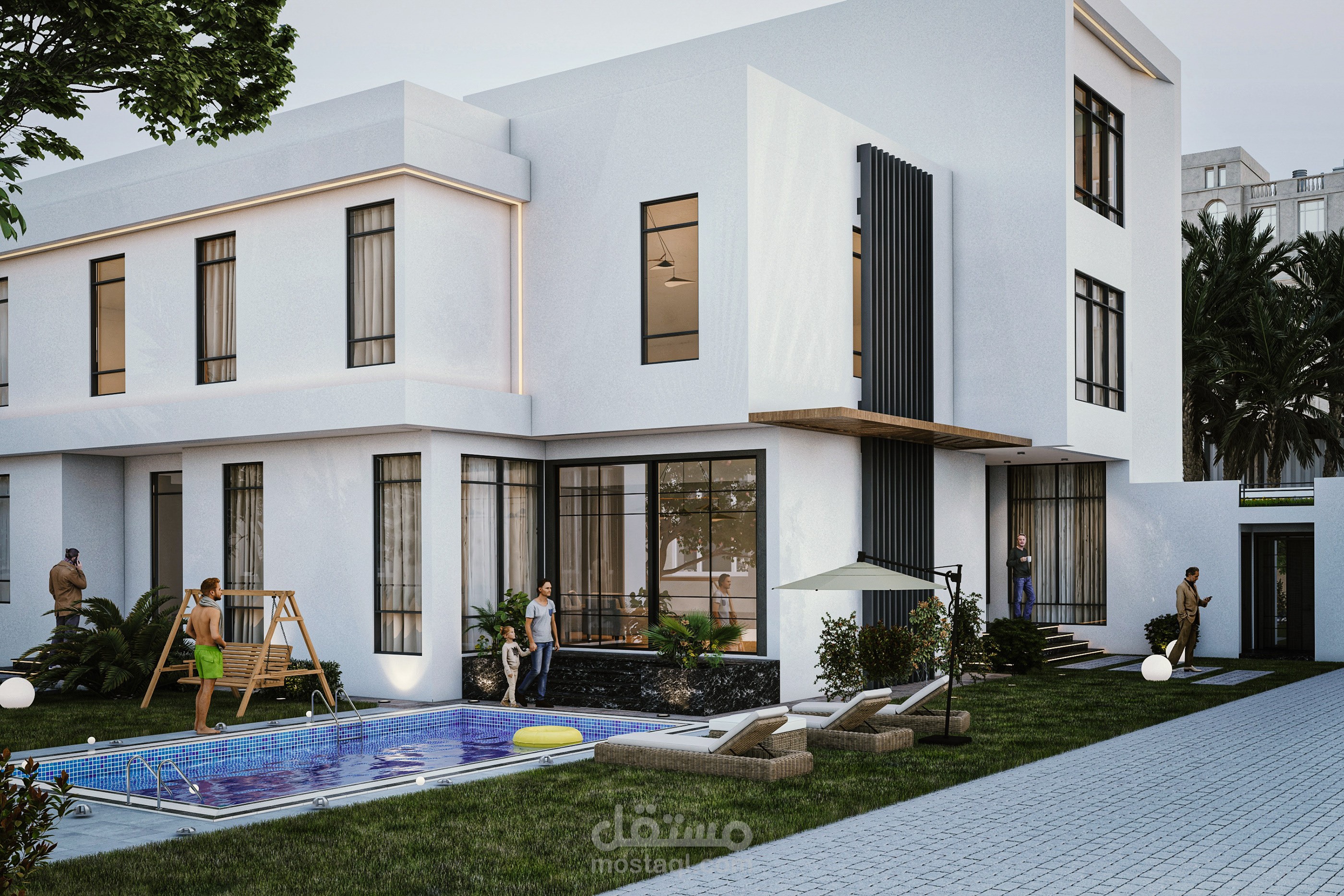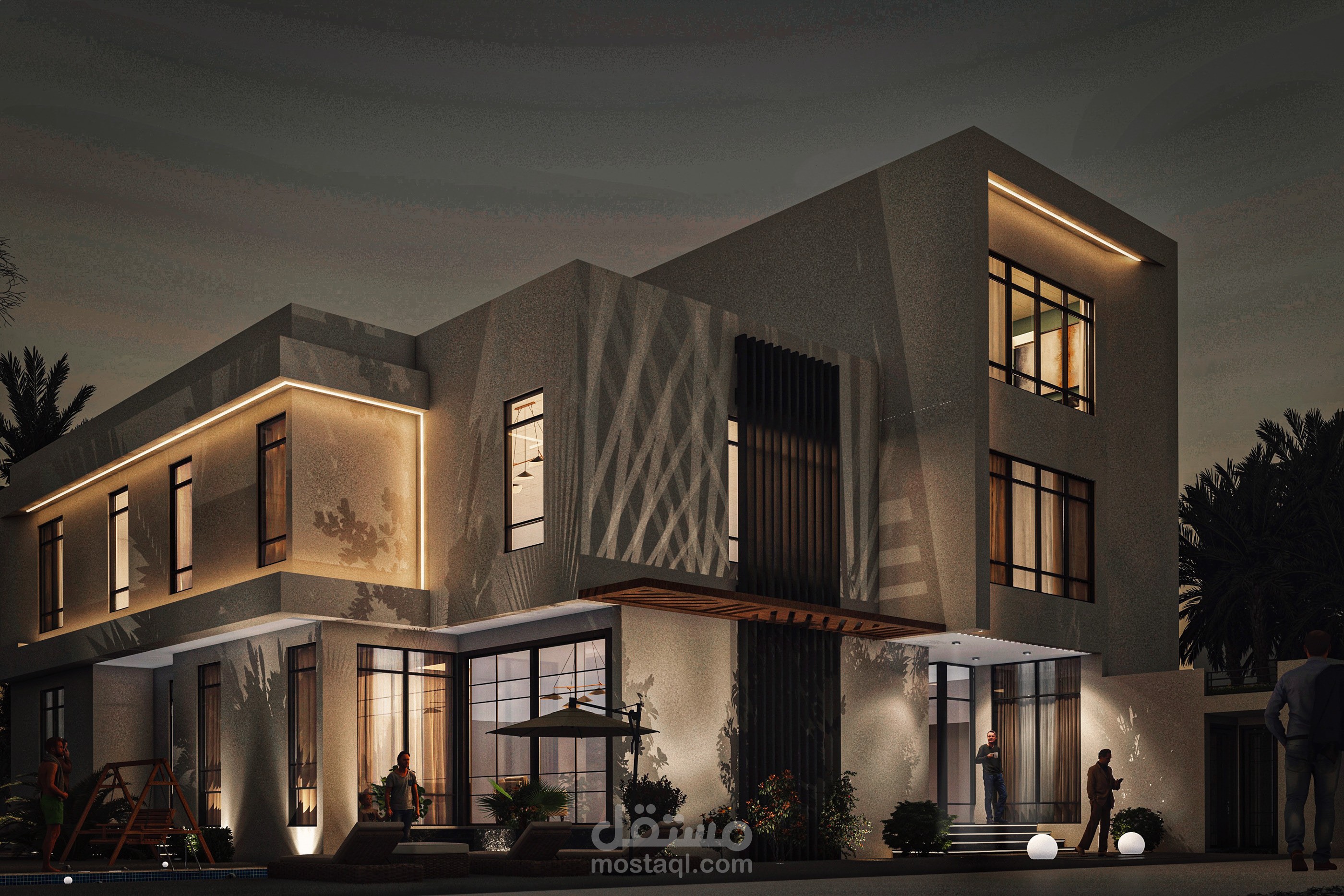 بفضل الله من اخر اعمالنا تصميم واجهة فيلا ب استايل minimal انيق و جذاب.