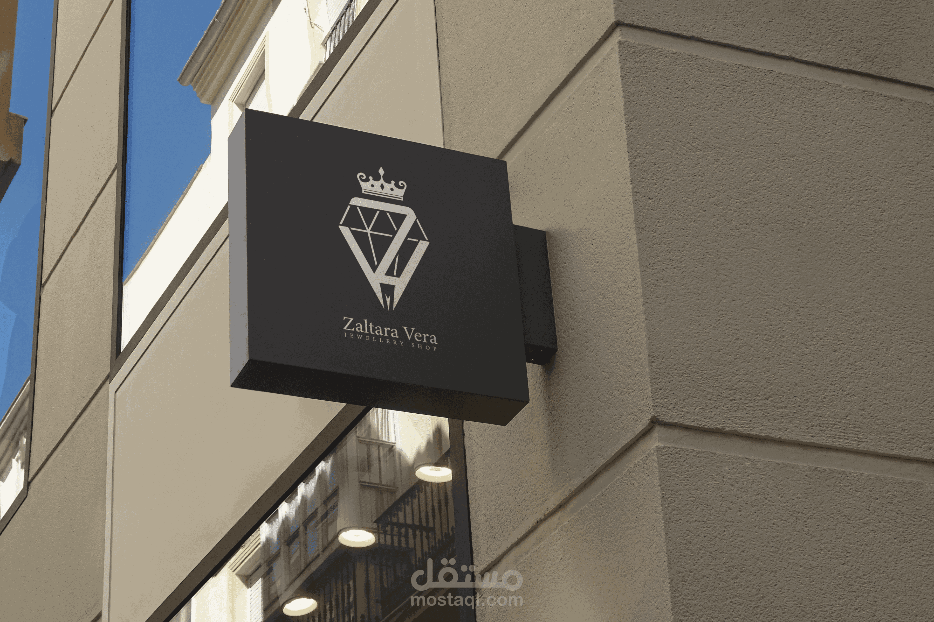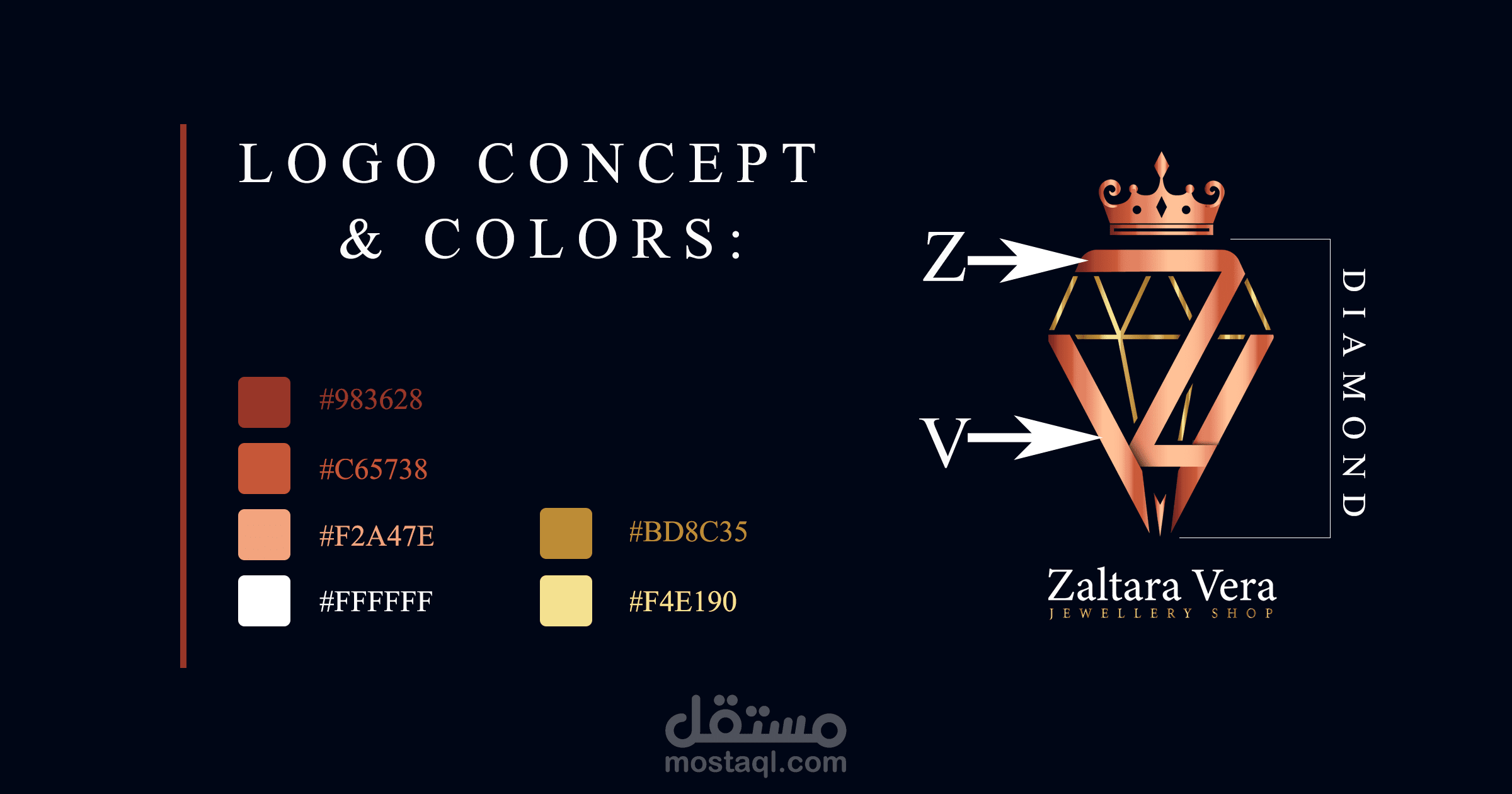 التصميم عبارة عن دمج حرفي z+v من اسم المحل من diamond كرمز للمجوهرات و تاج يرمز للجمال و الفخامة