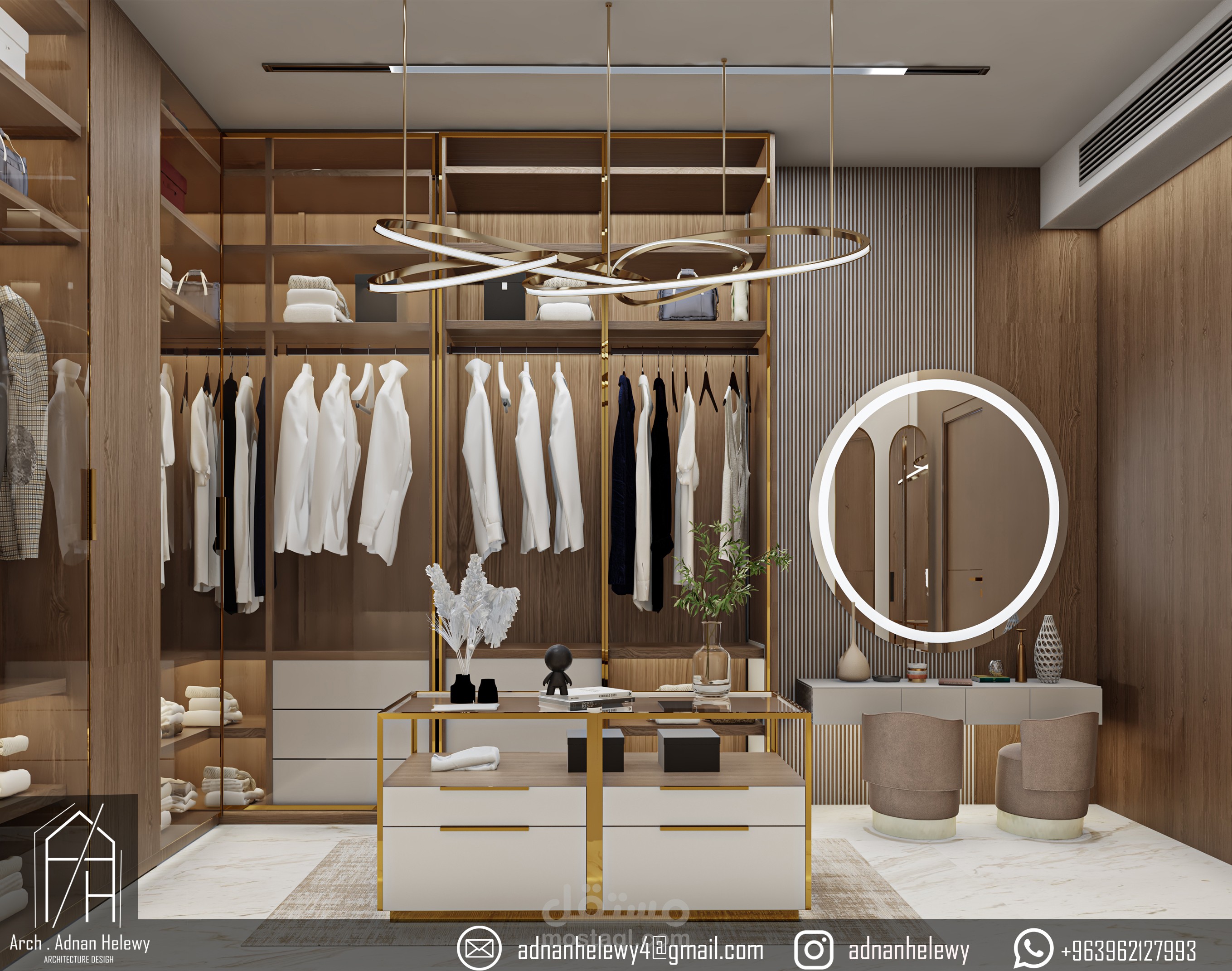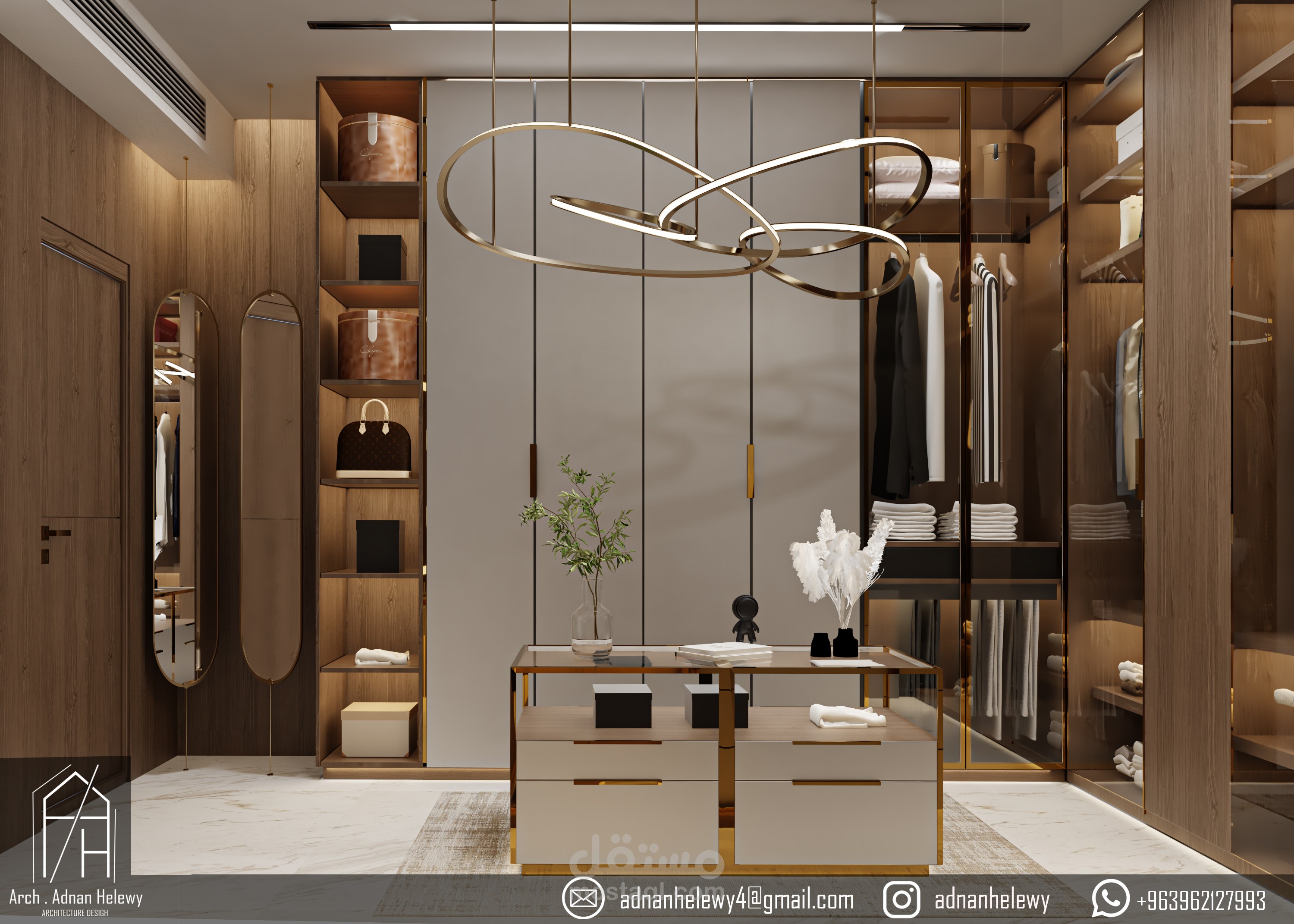 تصميم داخلي لغرفة ملابس على الطراز الحديث