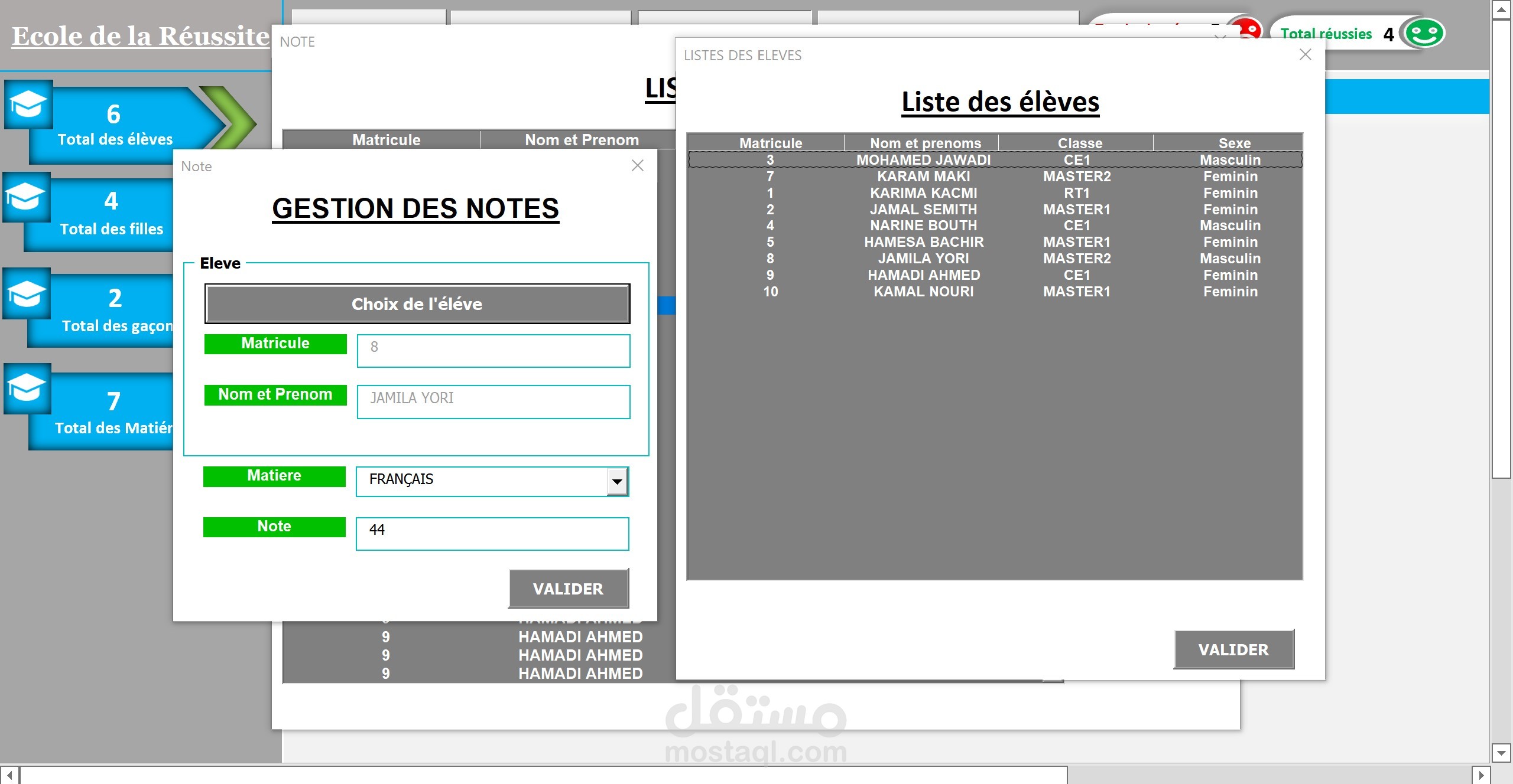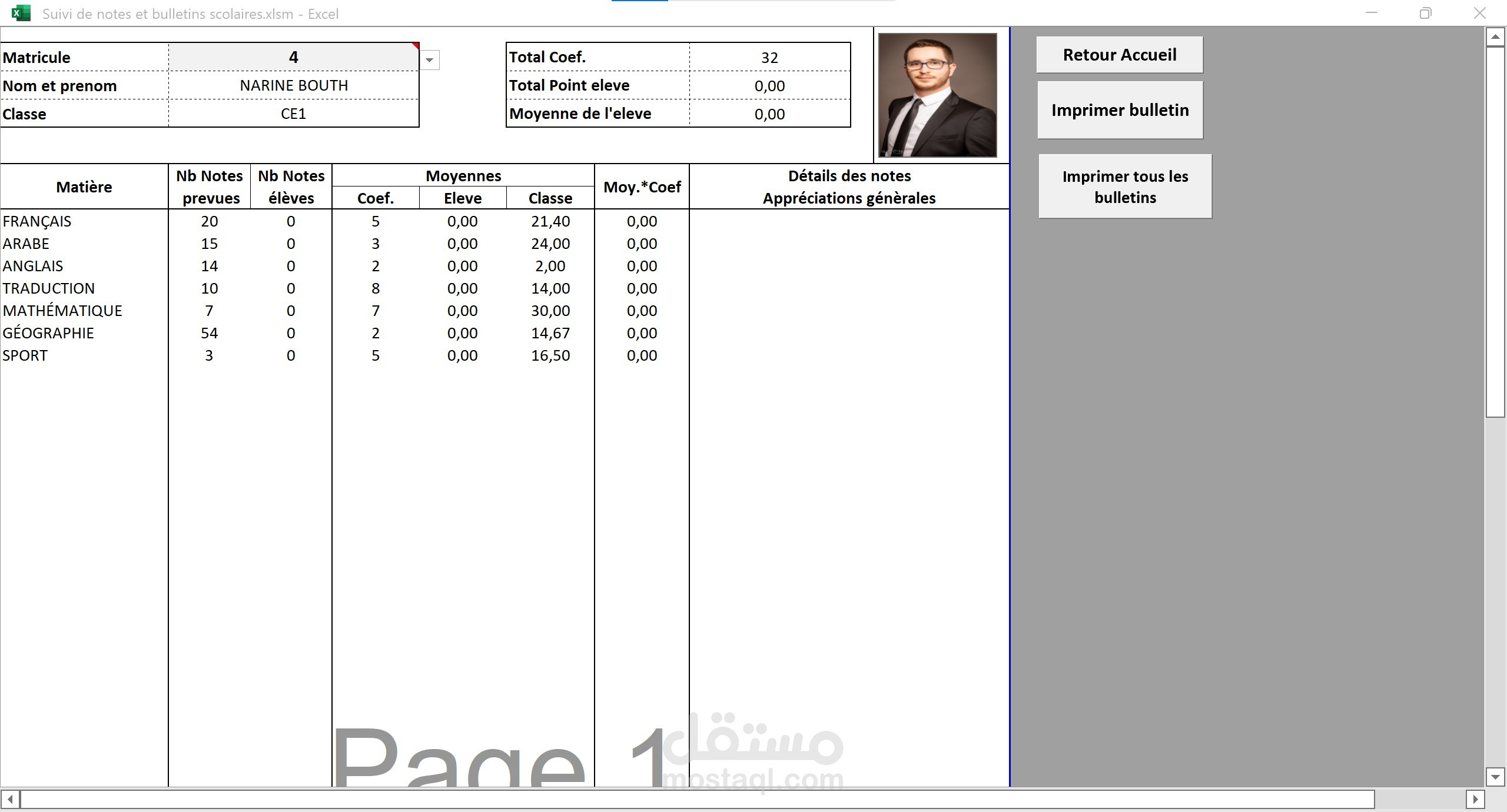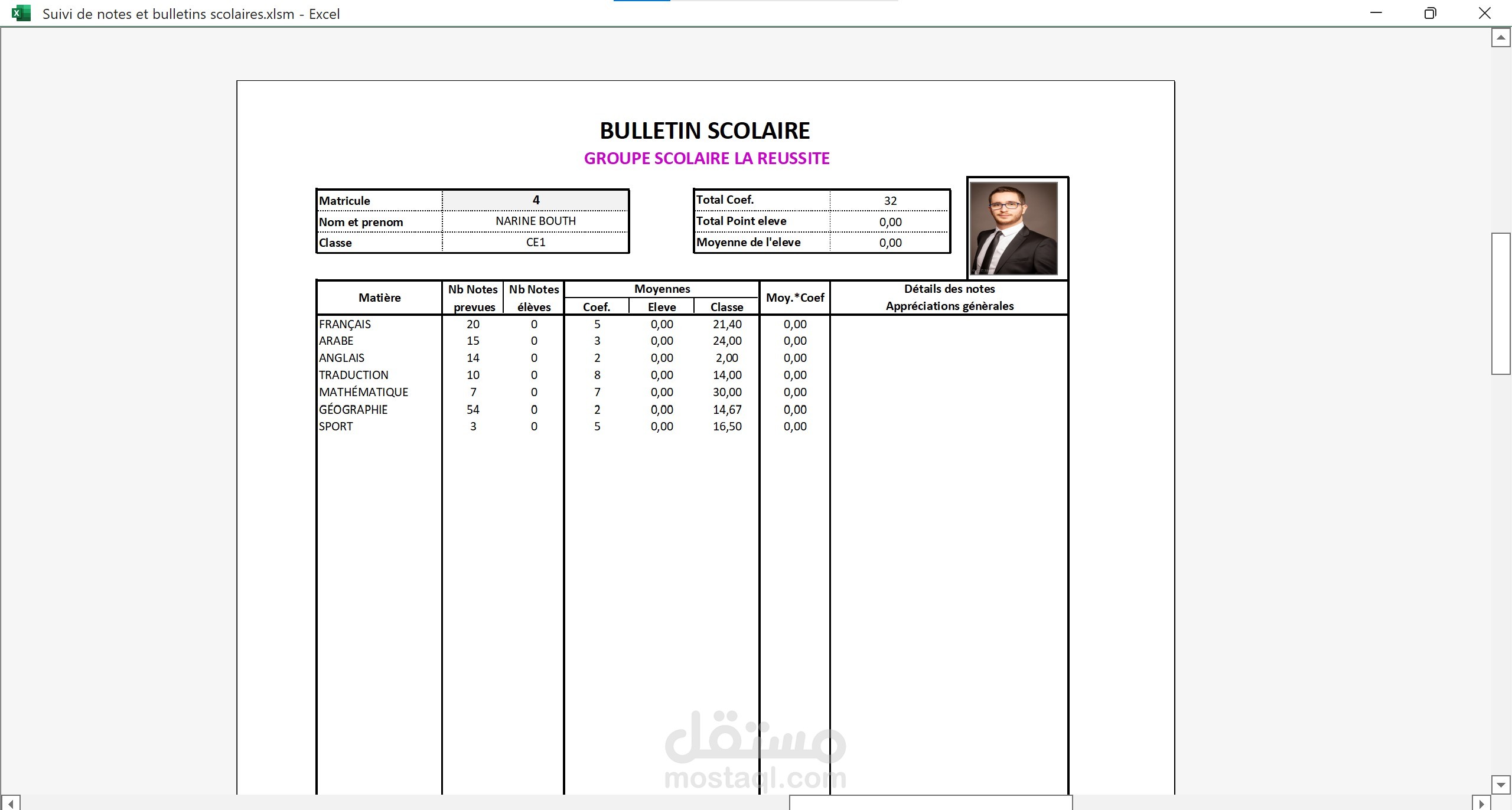 Excel:تطبيق خاص بالمدارس للتتبع معدلات تلاميذ القسم و استخراج النتائج.