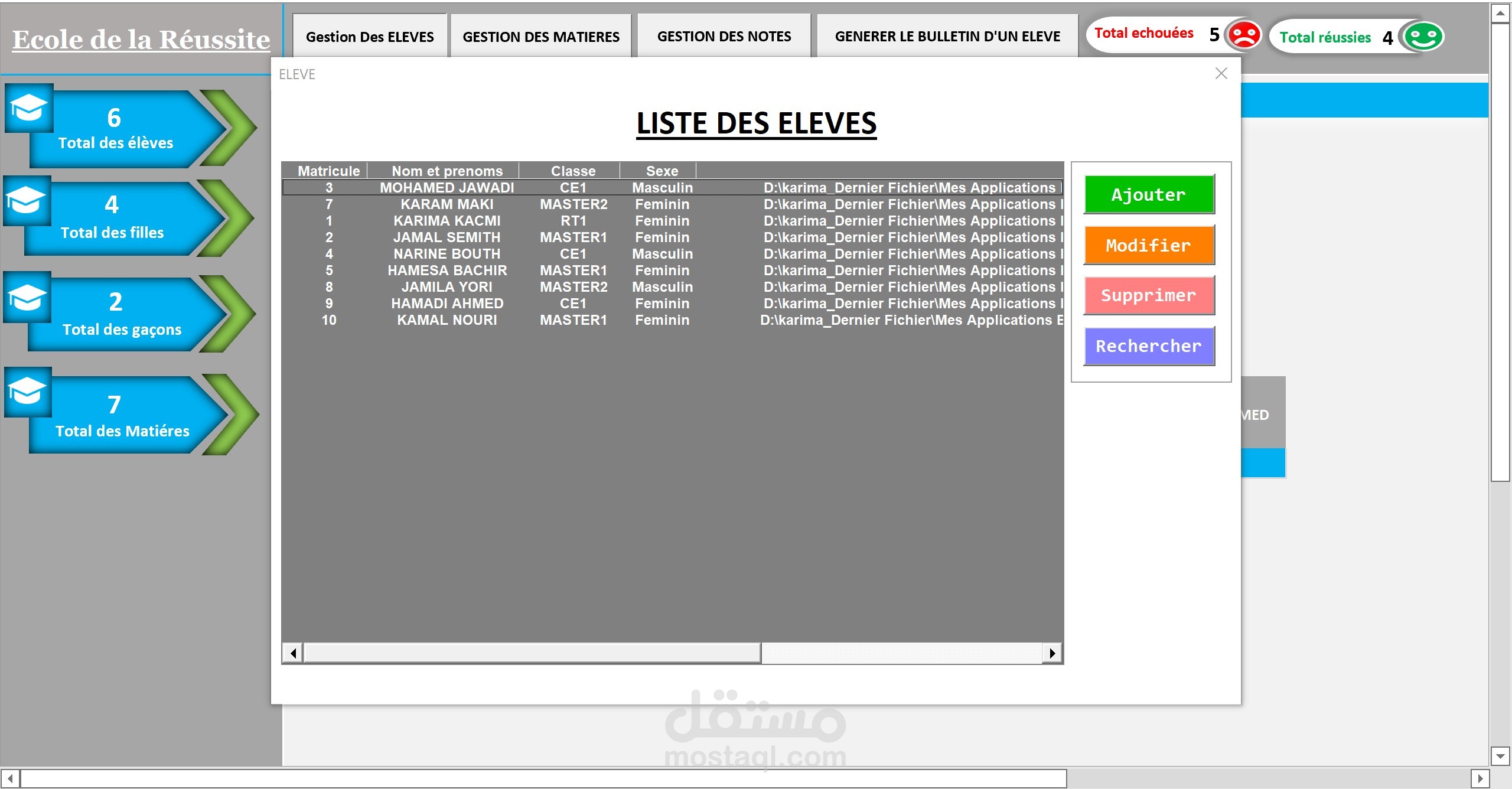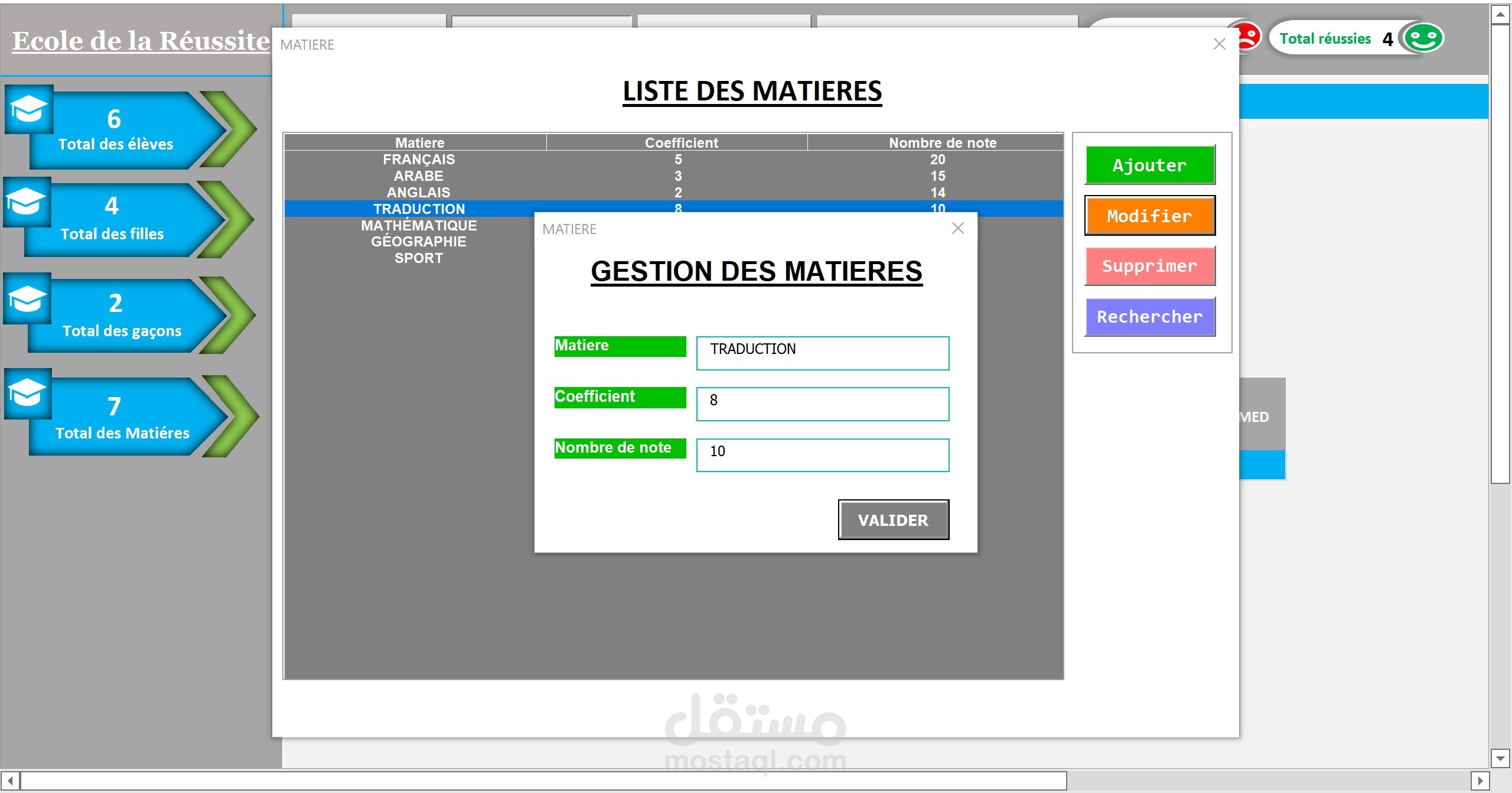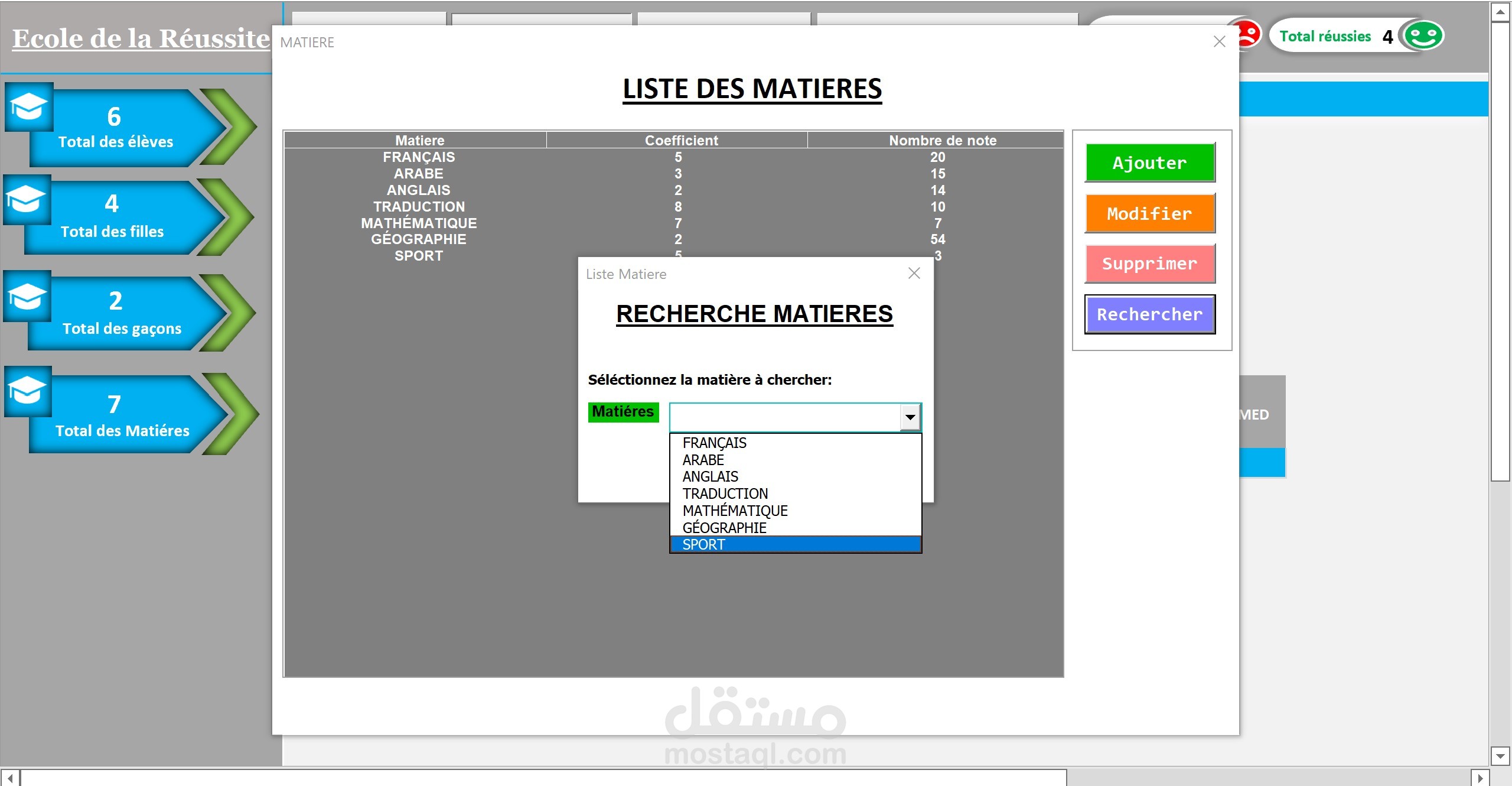 Excel:تطبيق خاص بالمدارس للتتبع معدلات تلاميذ القسم و استخراج النتائج.