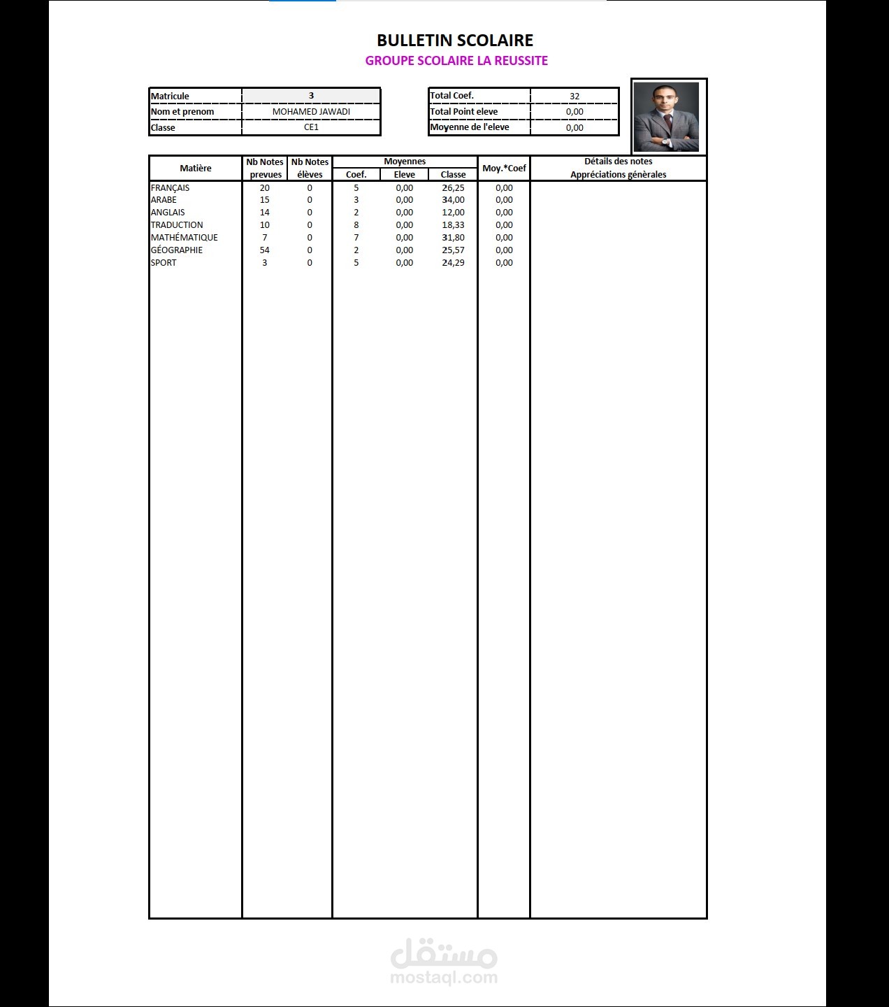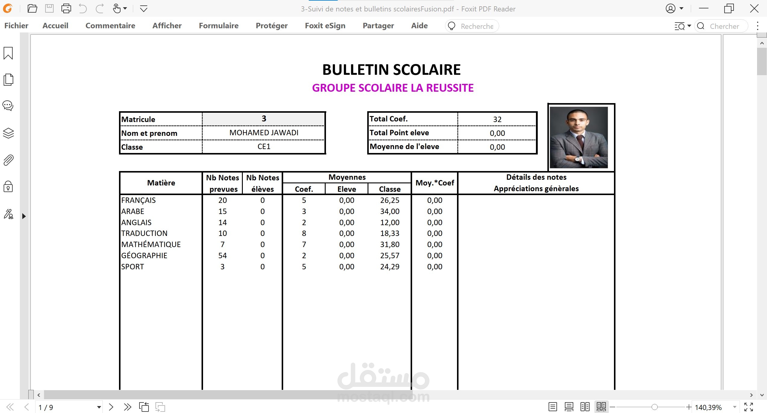 برنامج أكسل لتتبع معدلات تلاميذ القسم و استخراج النتائج : إليك أداة إدارة المدرسة!