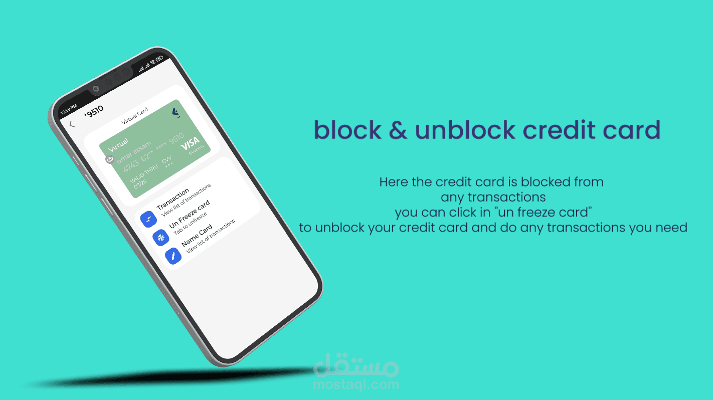 تطبيق بنك إلكتروني يستطيع المستخدم ان يفتح حساب مع البنك ويقوم بإنشاء credit card له مع البنك