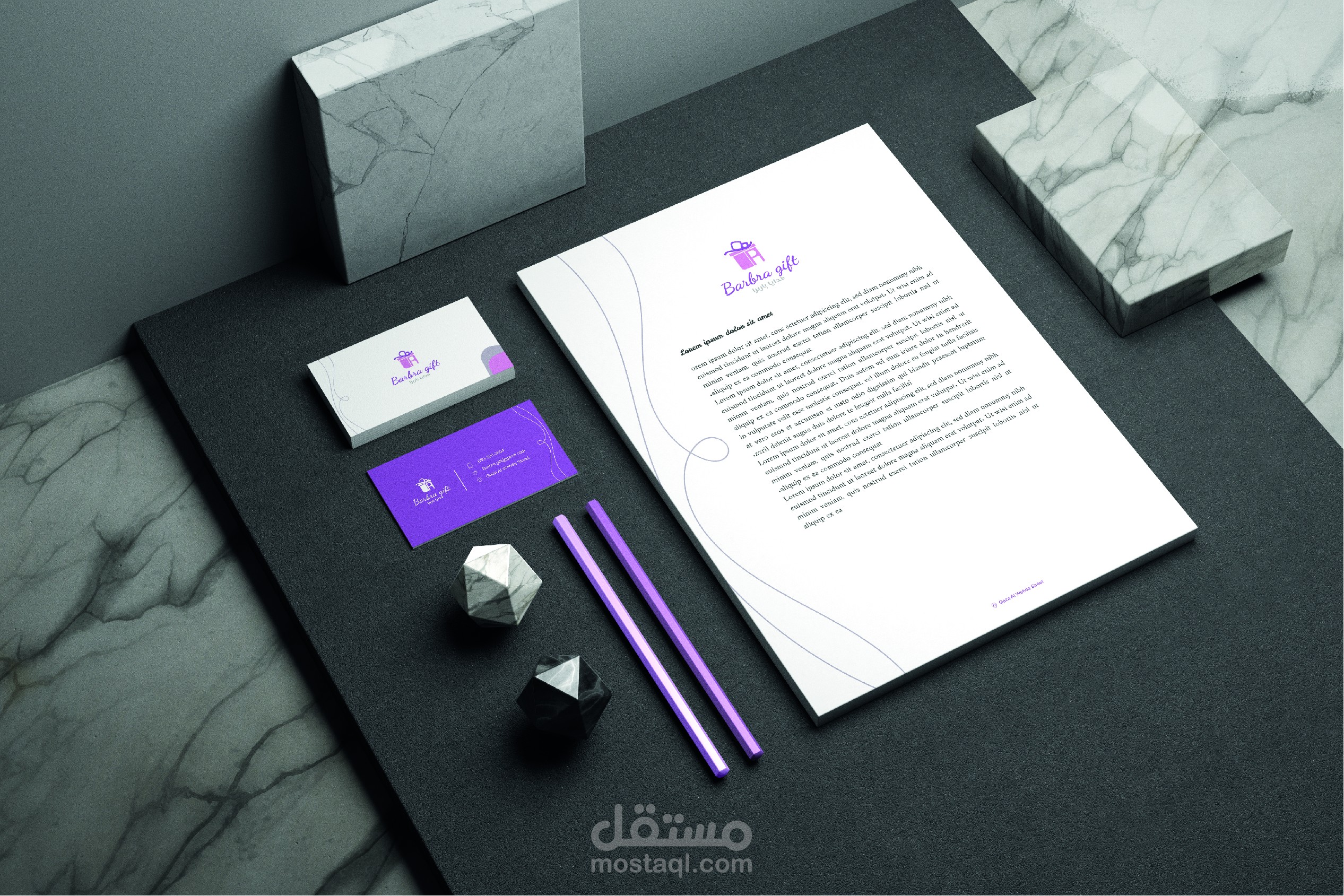 في هذا العمل تم عرض هوية بصرية كاملة لمعرض باربرا للهدايا يتضمن: