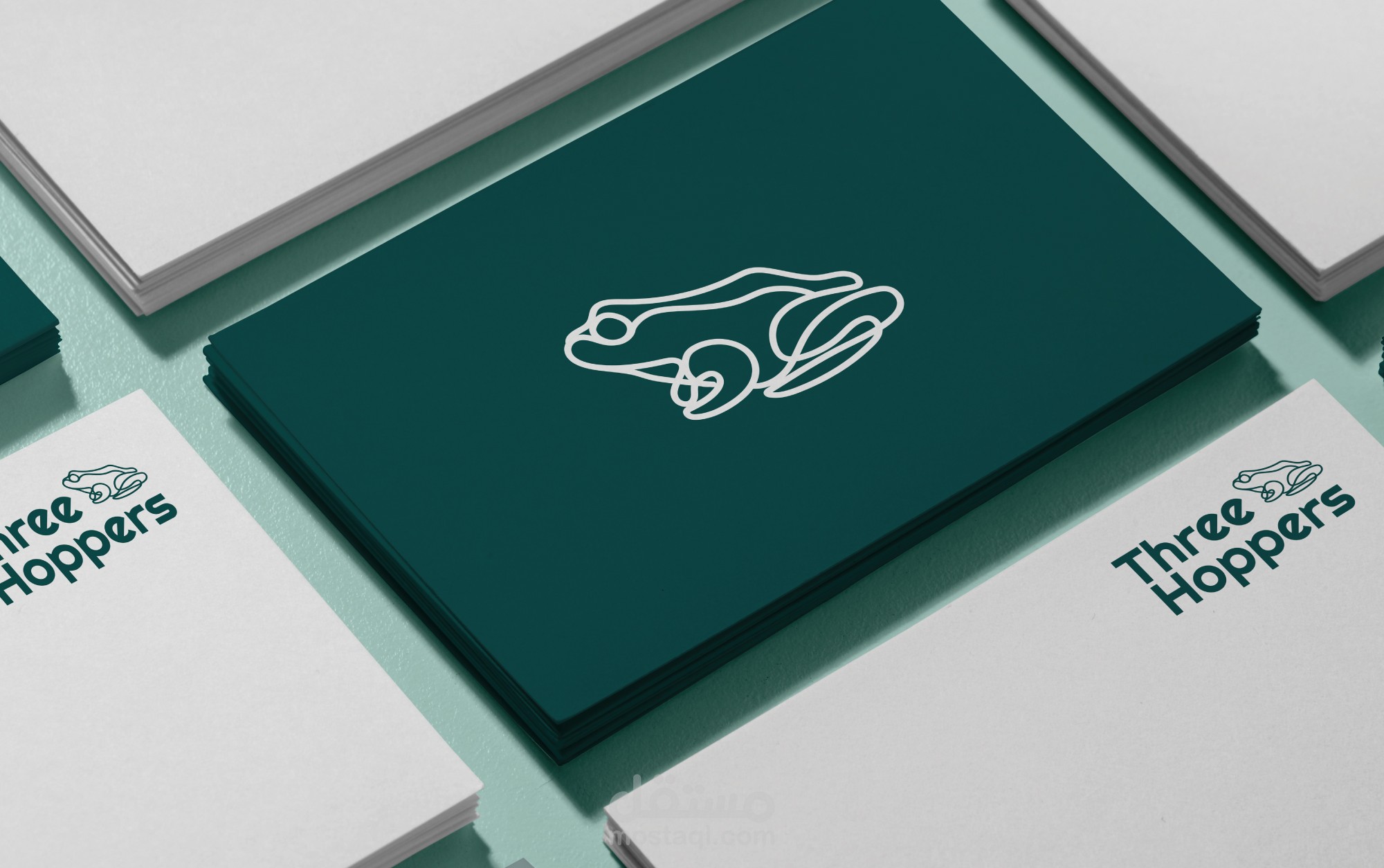 حددوا Three Hoppers استخدام ضفدع في الشعار, و اللون الأخضر.