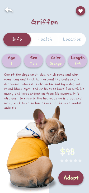 Adapted a pet molbile app