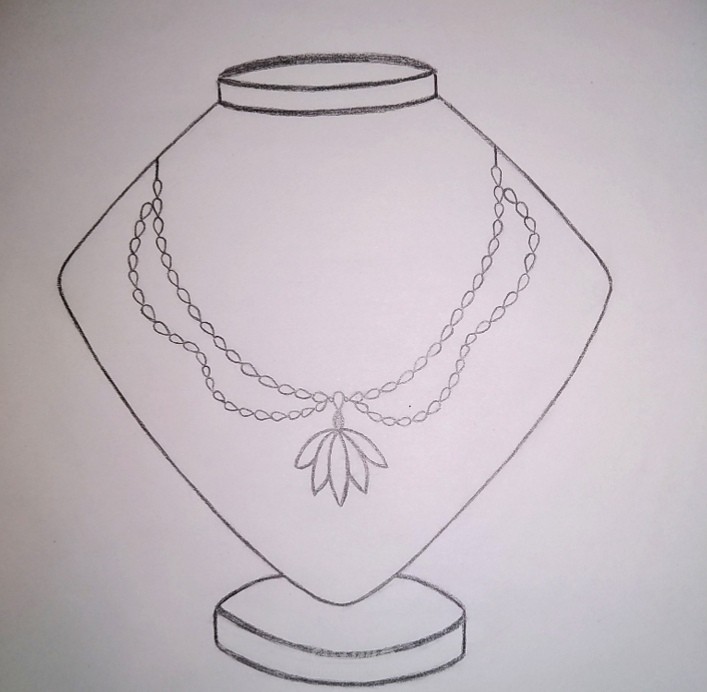 A luxurious golden necklace is composed of eye-drop shaped pearls and main piece as flipped-to-bottom flower petals, the edges of each petal can be made of diamonds or white gold