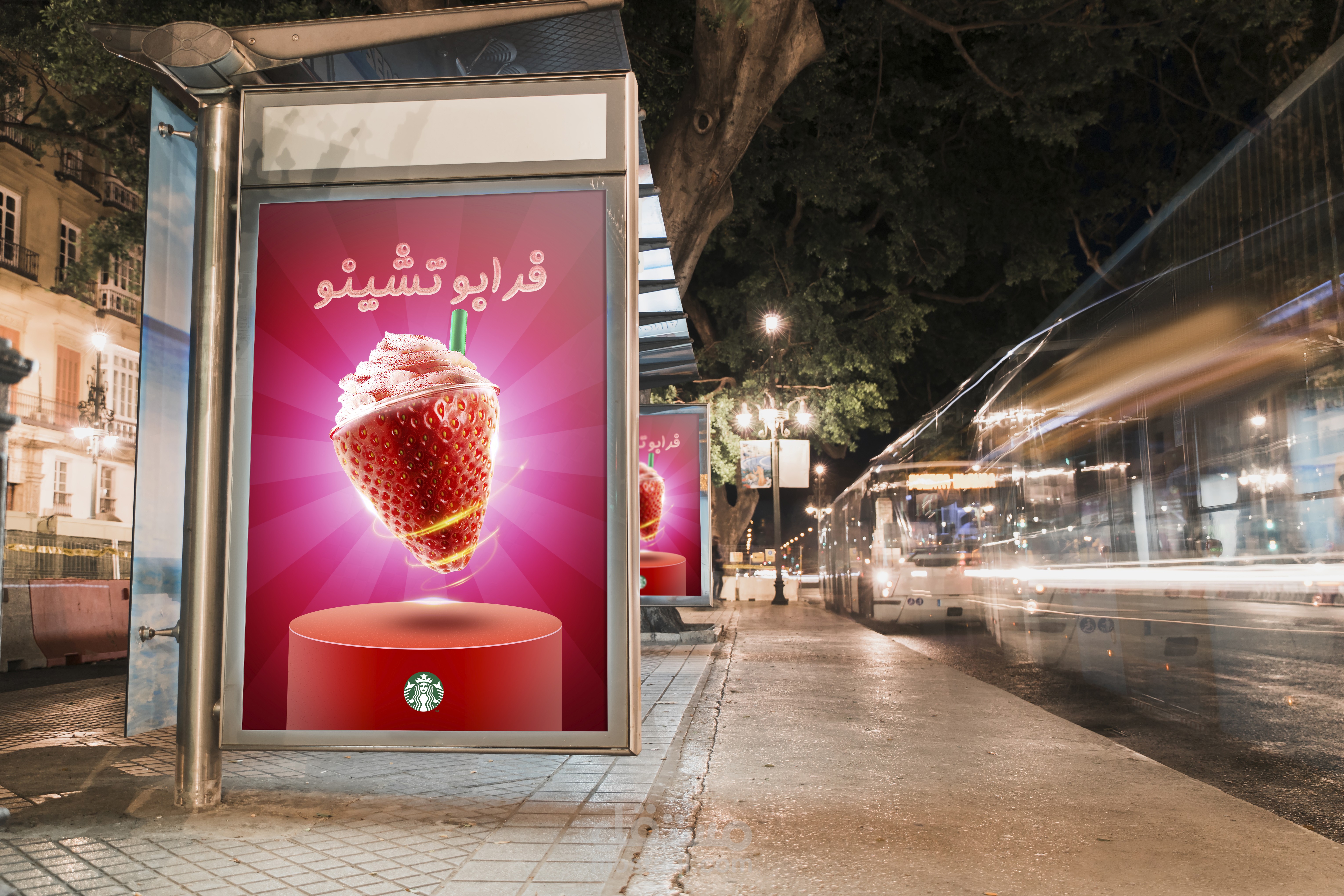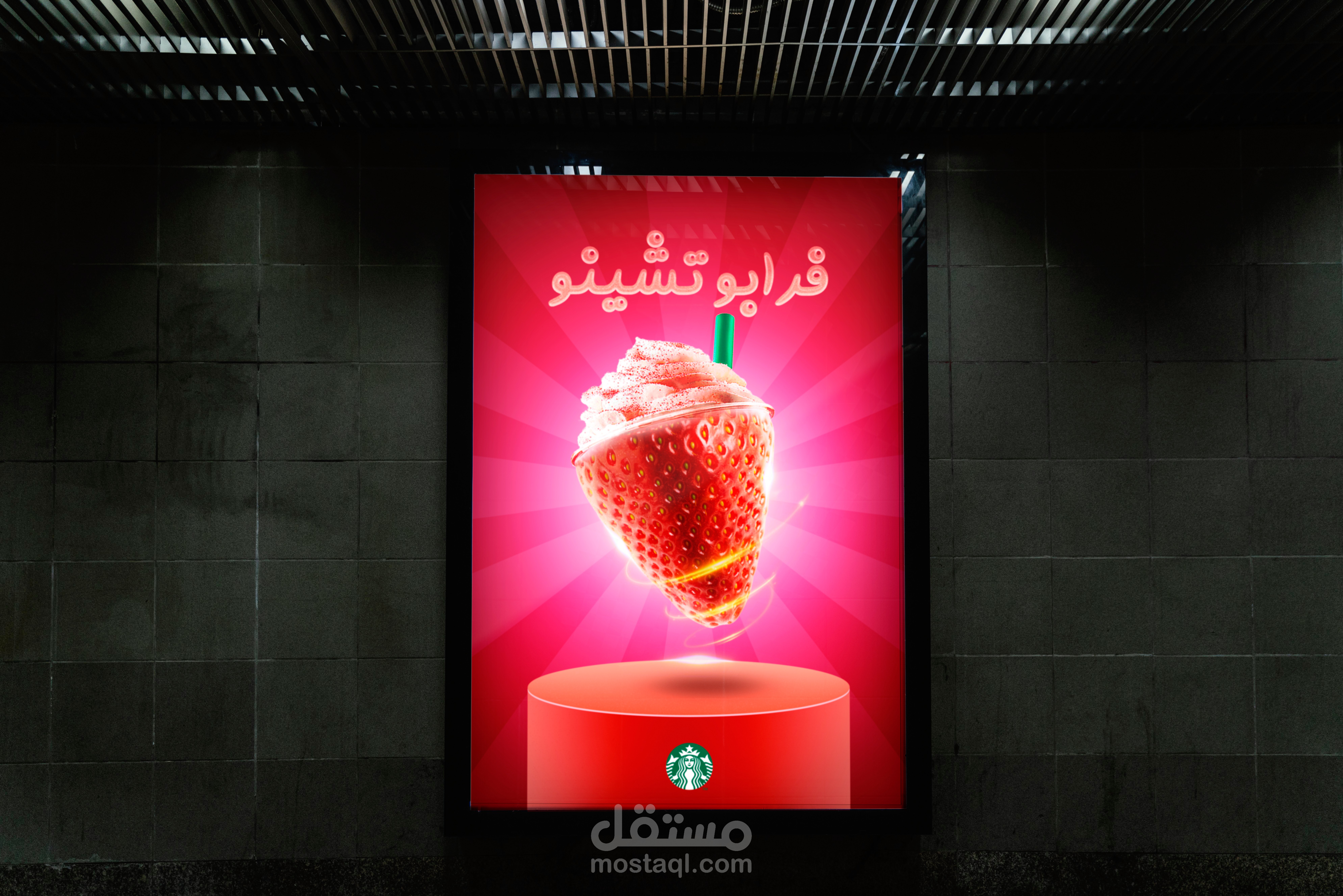 تصميم اعلان لفرابوتشينو بالفراولة الخاص بستارباكس